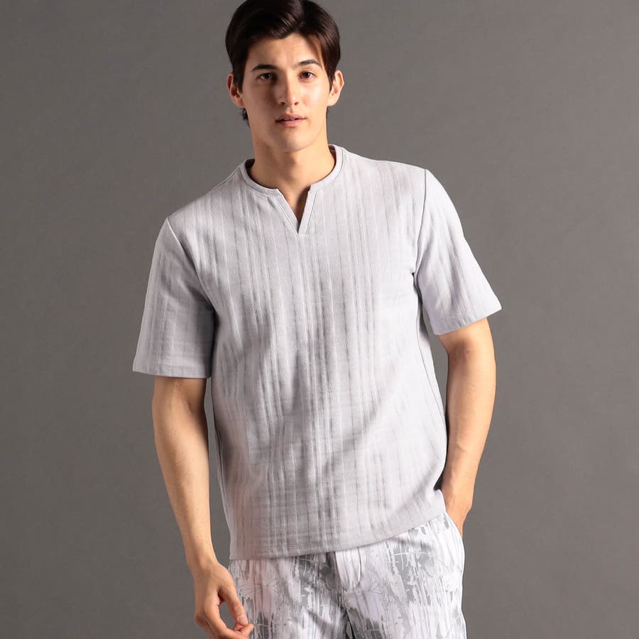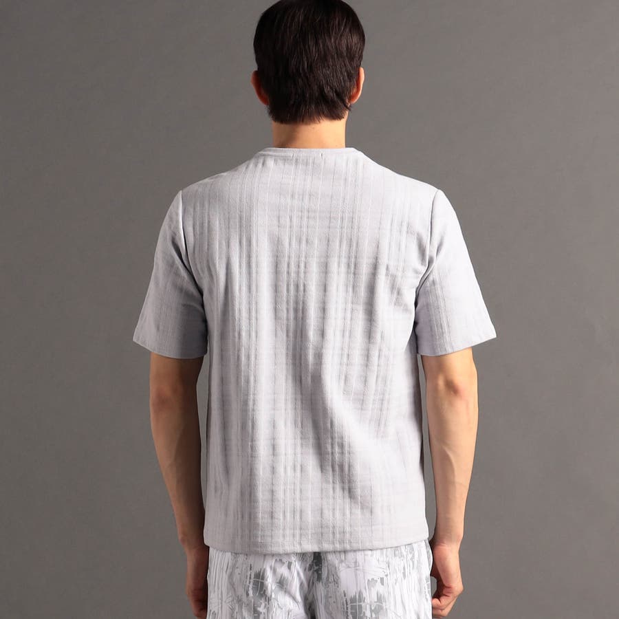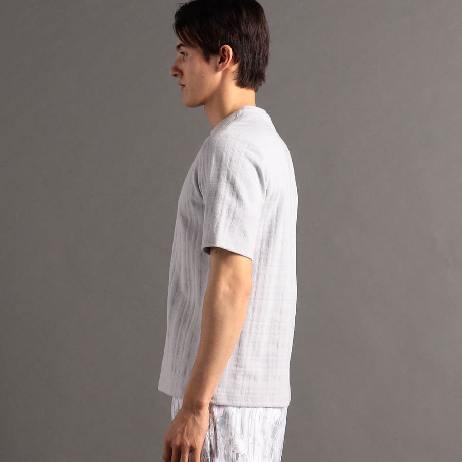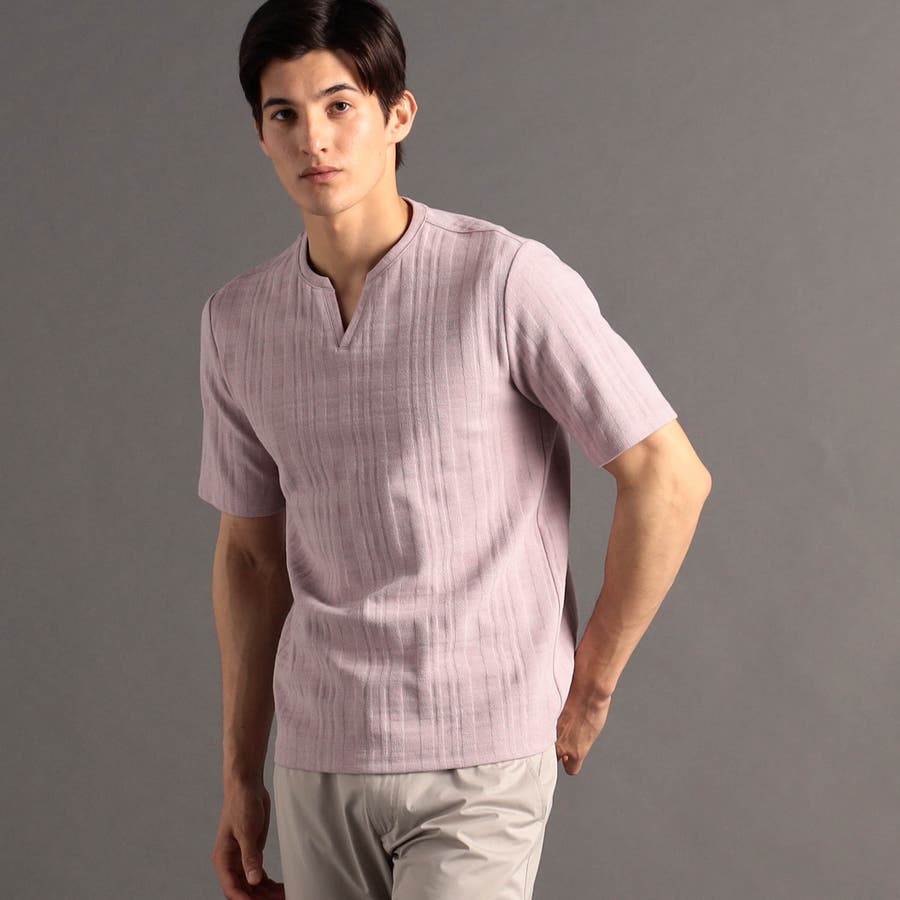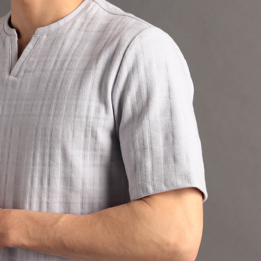 チェック柄の表情のある生地感が特徴のキーネックTシャツ。