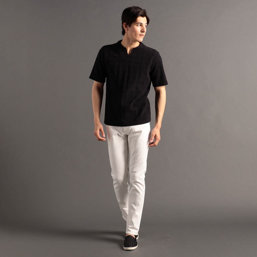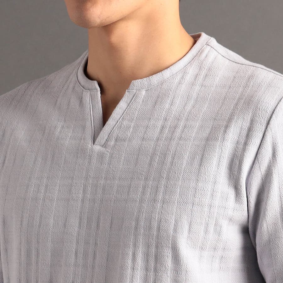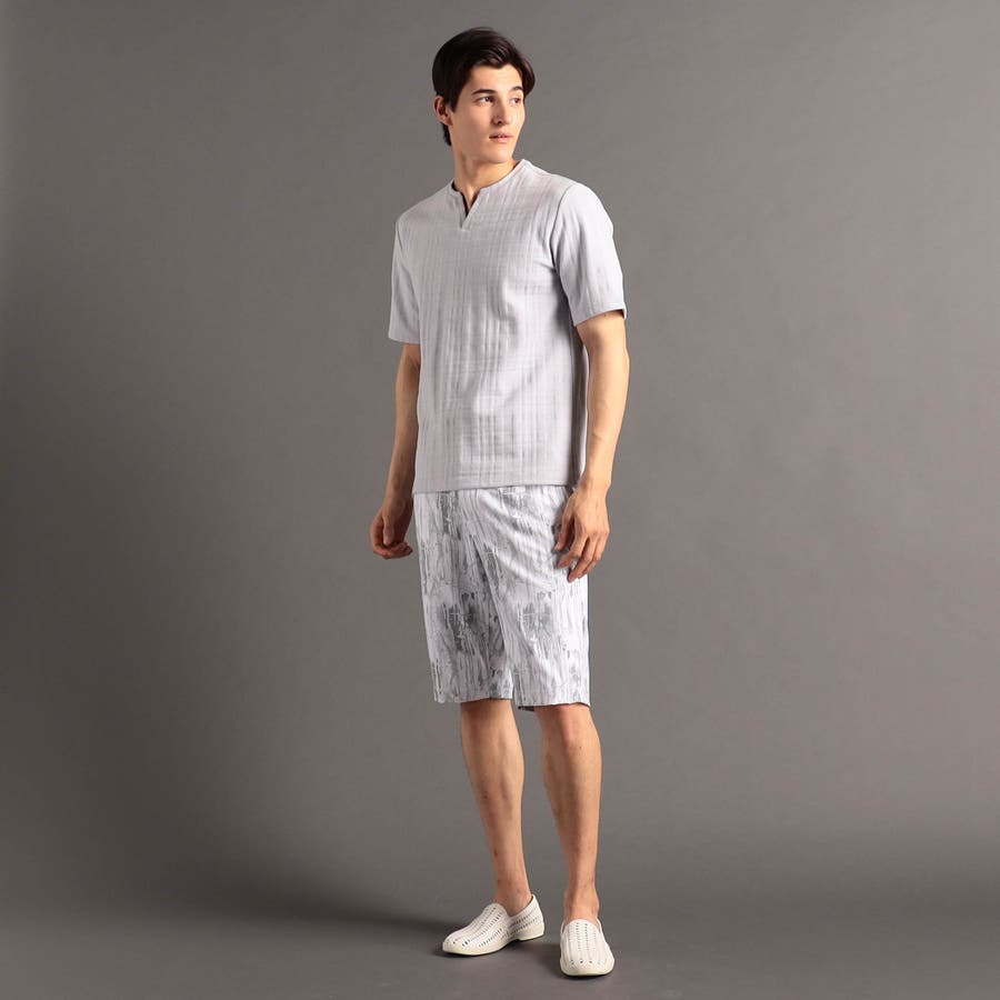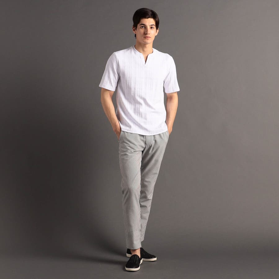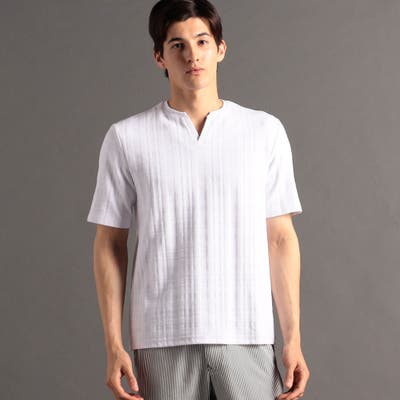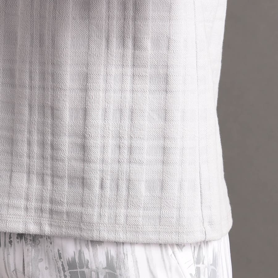 チェック柄の表情のある生地感が特徴のキーネックTシャツ。