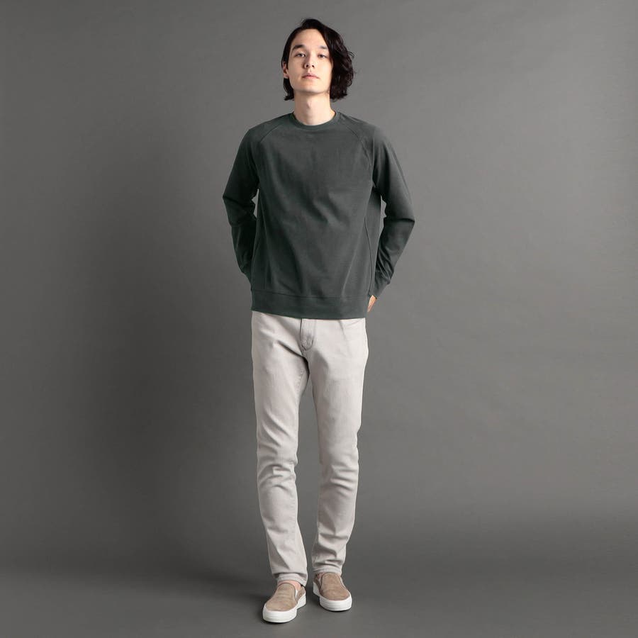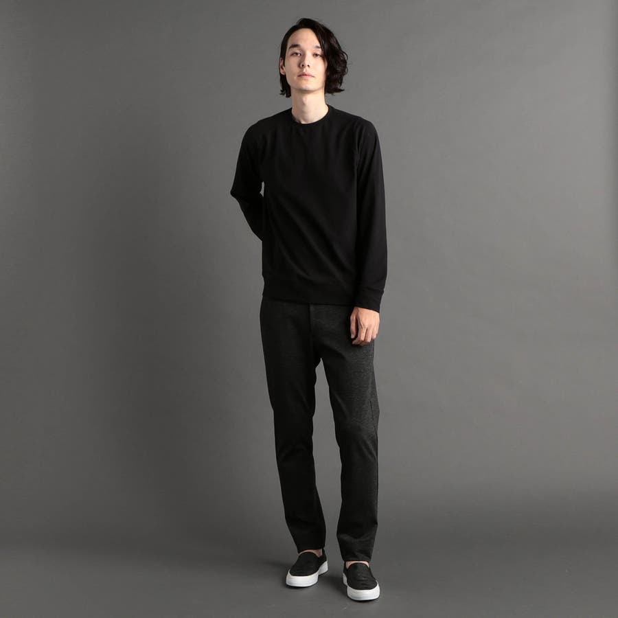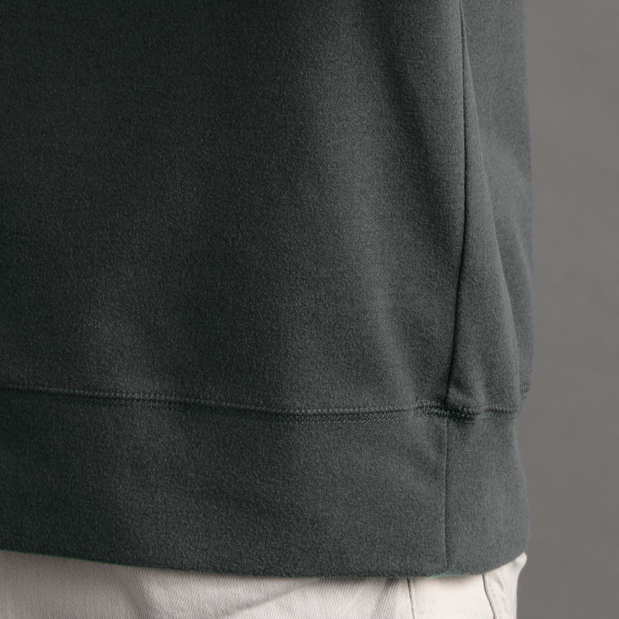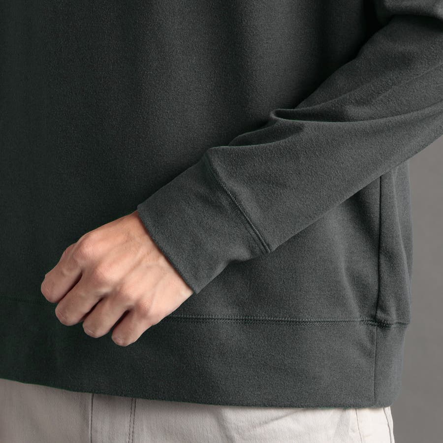 体のラインを拾わないゆとりのあるボディに、丸首と裾を程よく詰めたスウェットライクなデザイン。