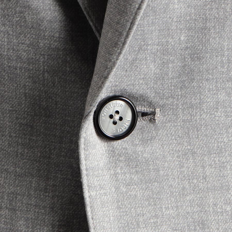 24Gサーキュラーダブルジャージを採用。目付250g/?のベース素材にメランジプリントしたムッシュニコル別注素材。絶妙な<張り感とキックバック性>に加え、上品な光沢感を持つ革新素材です。