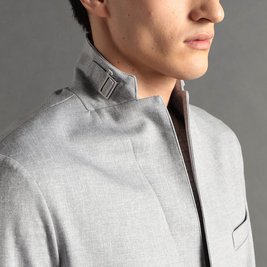 衿裏にタブベルトを装備し、衿を立ててブルゾン風に着こなすことも可能なスポーティーで洗練されたジャケットです。
