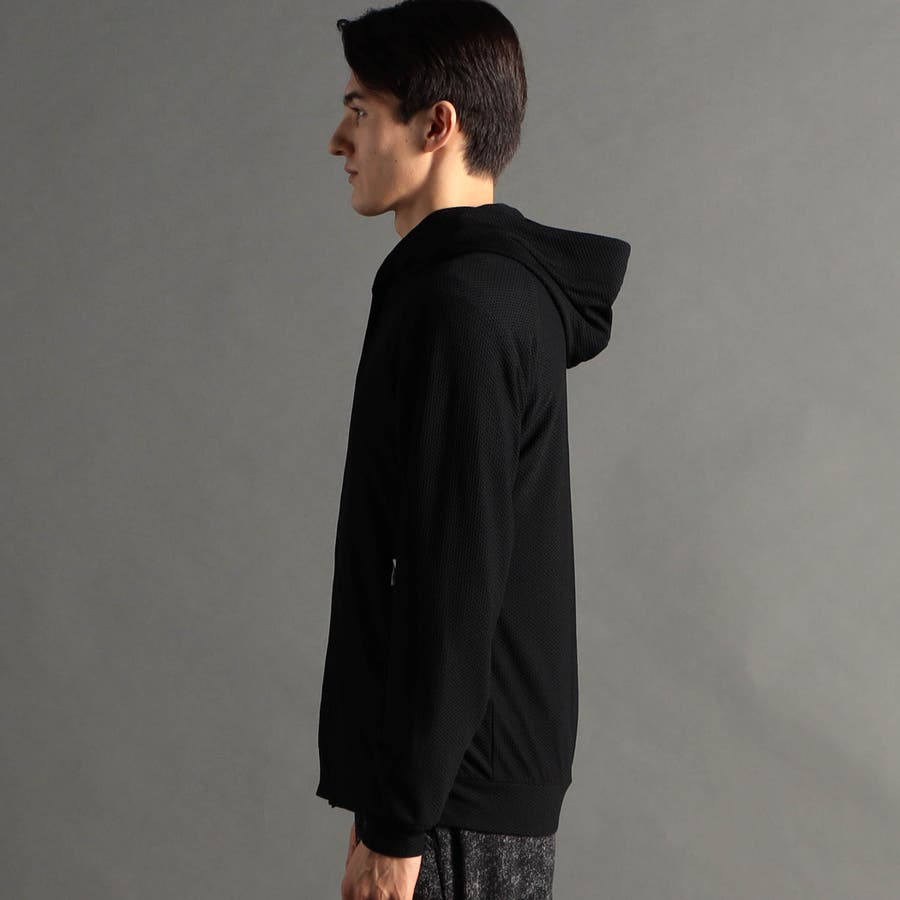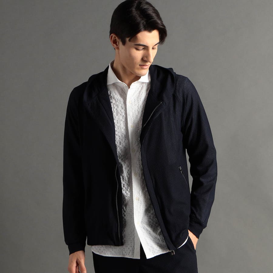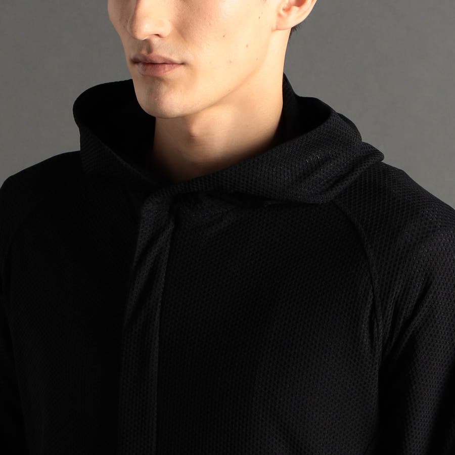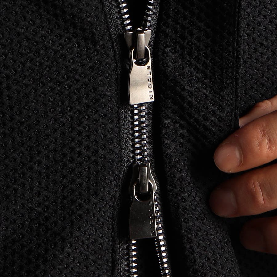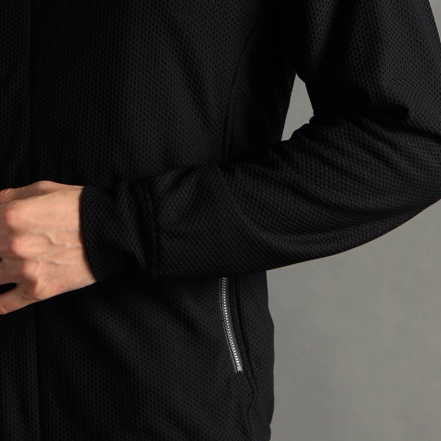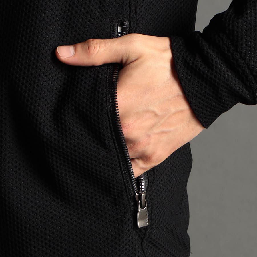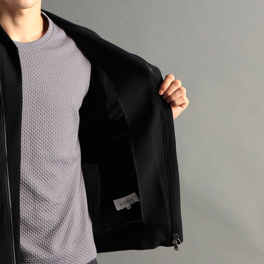 ナイロン×ポリウレタンのハニカムメッシュトリコットを別注。ハニカム構造で軽量かつ通気性、防シワ性に優れた、ハイパーストレッチ素材です。