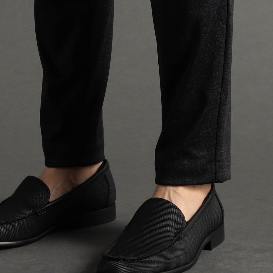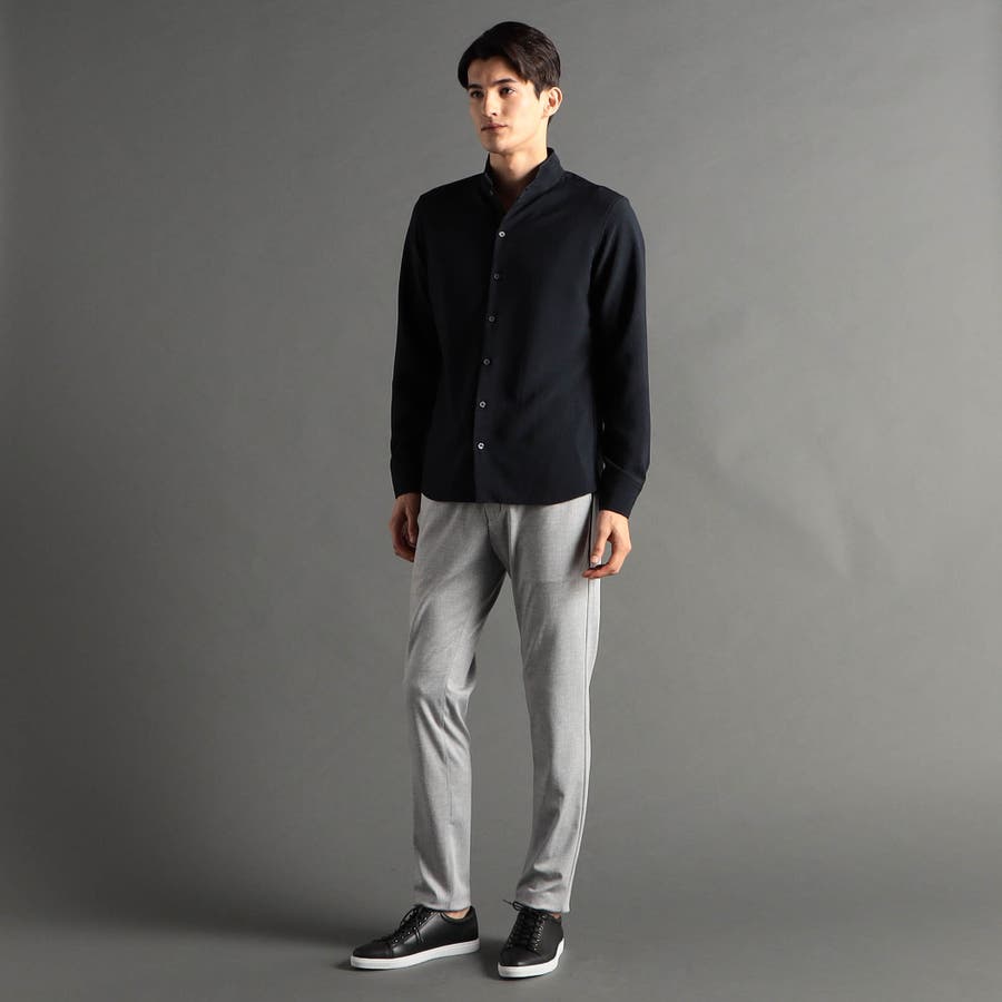 24Gサーキュラーダブルジャージを採用。目付250g/平方メートルのベース素材にメランジプリントしたムッシュニコル別注素材。絶妙な<張り感とキックバック性>に加え、上品な光沢感を持つ革新素材です。