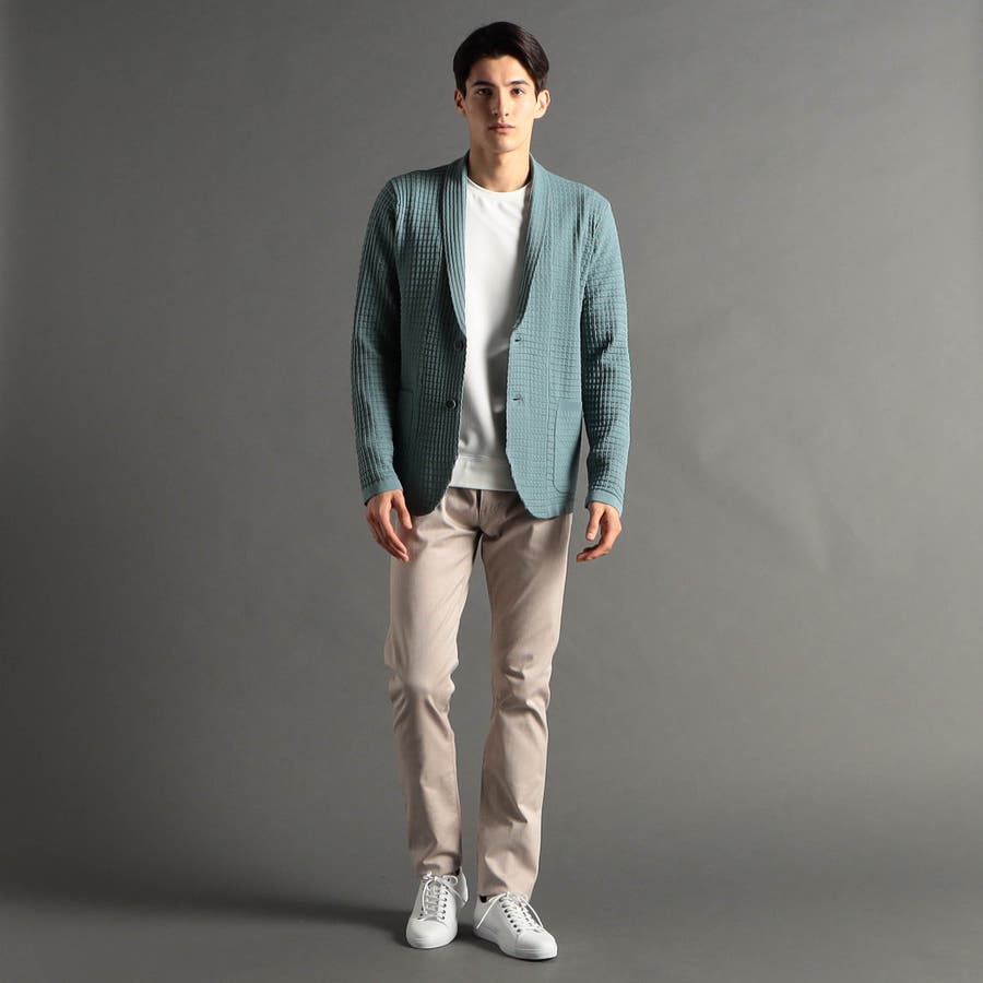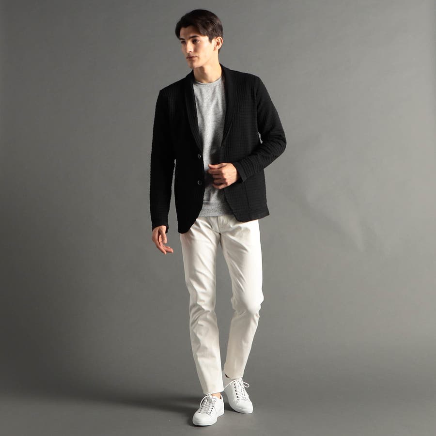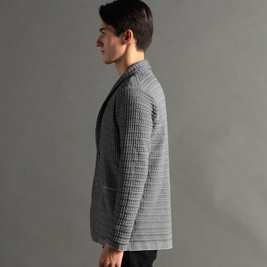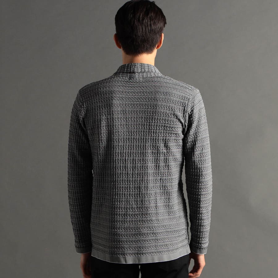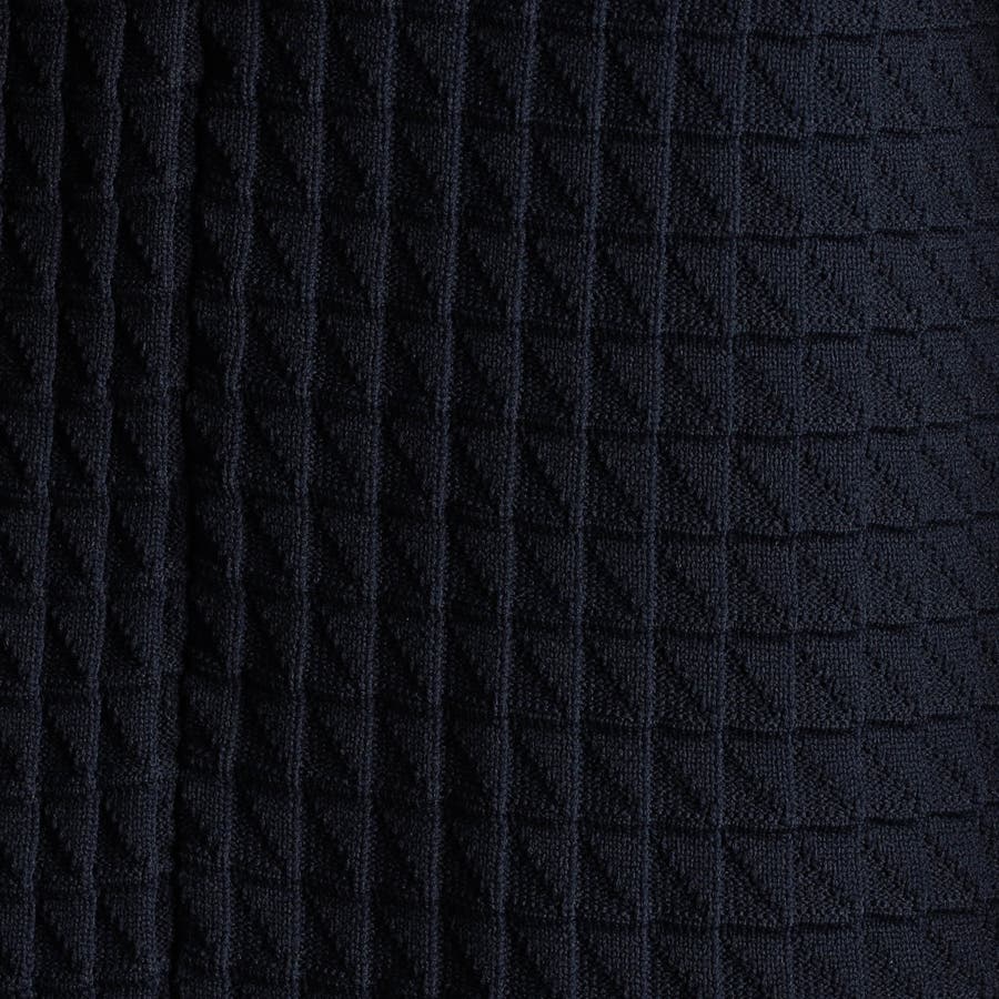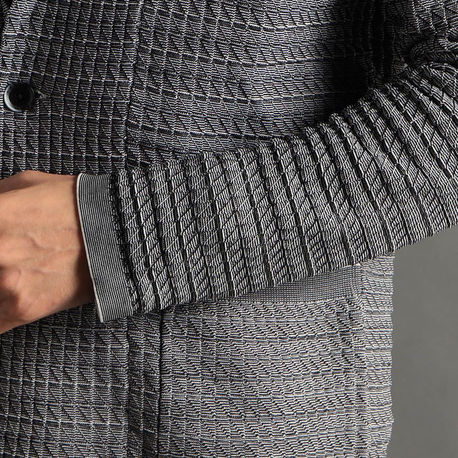リンクスジャカードで立体感のあるジオメトリック柄を表現。ニットならではの軽さと通気性の良さが魅力です。今季は、縦柄に刷新し、モードに仕上げました。