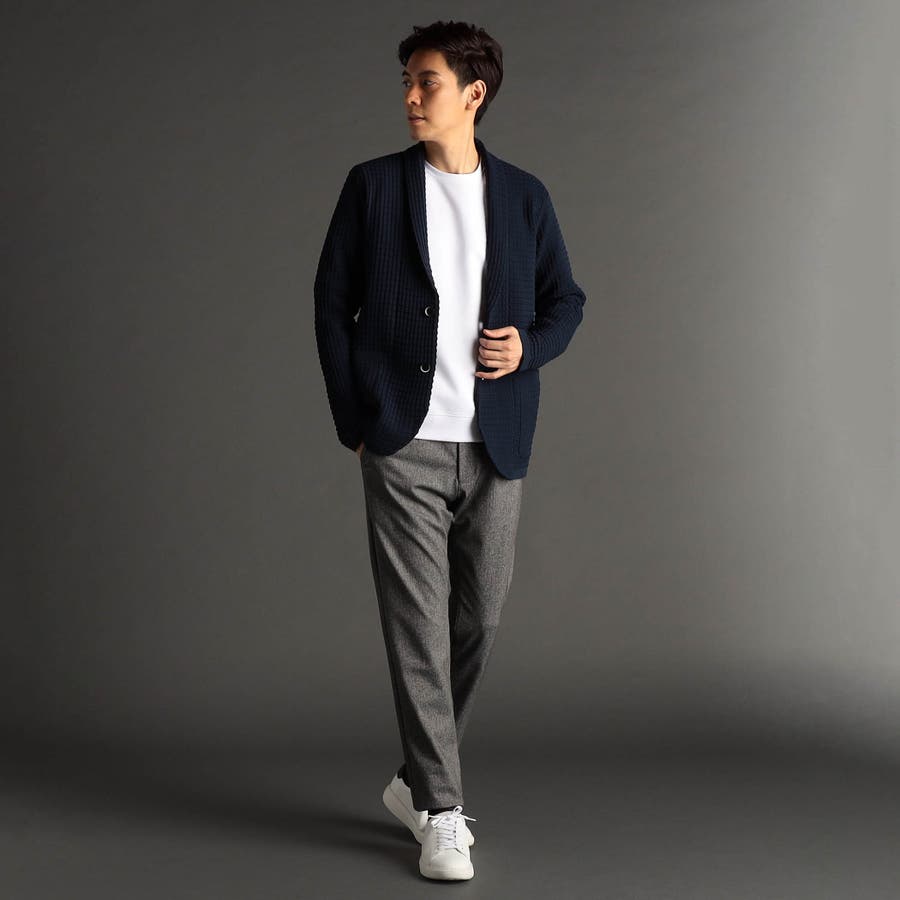 大人のリラクシングスタイルに最適なショールカラーカーディガン。