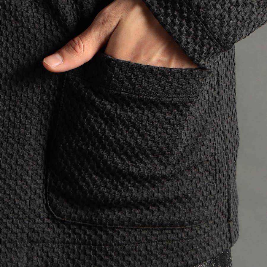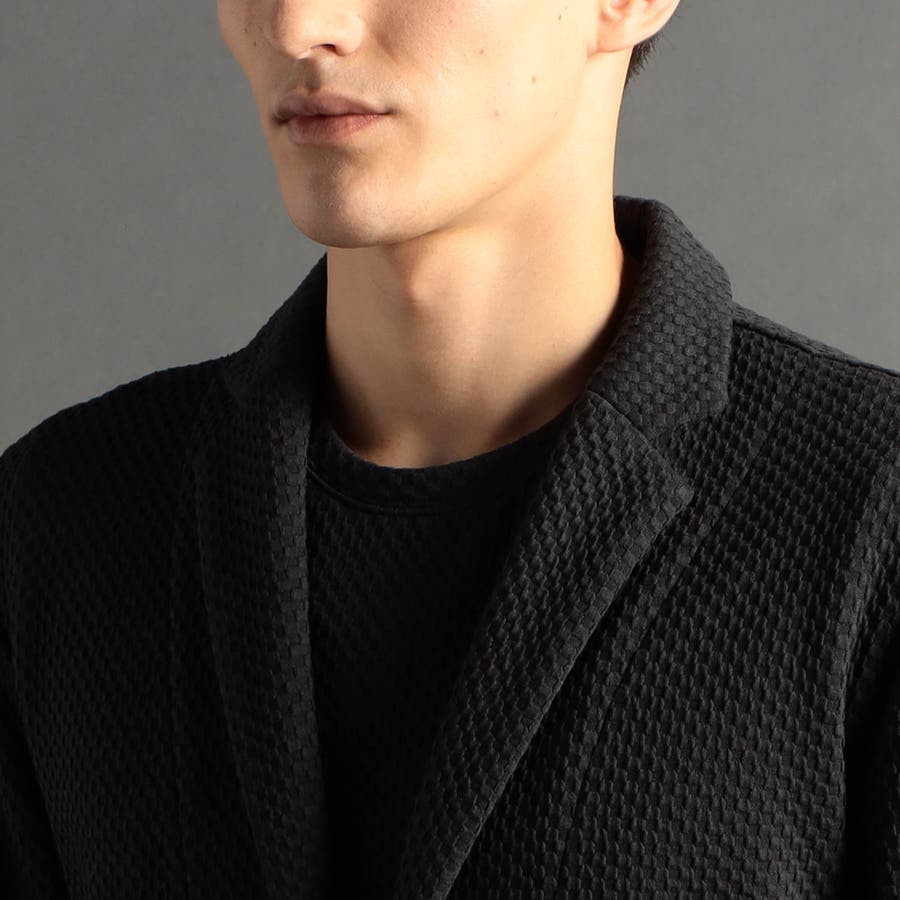 今季は、ジオメトリカルなグリッド柄を立体的に表現しました。上品な光沢としなやかな風合い、抜群のストレッチ性が魅力です。