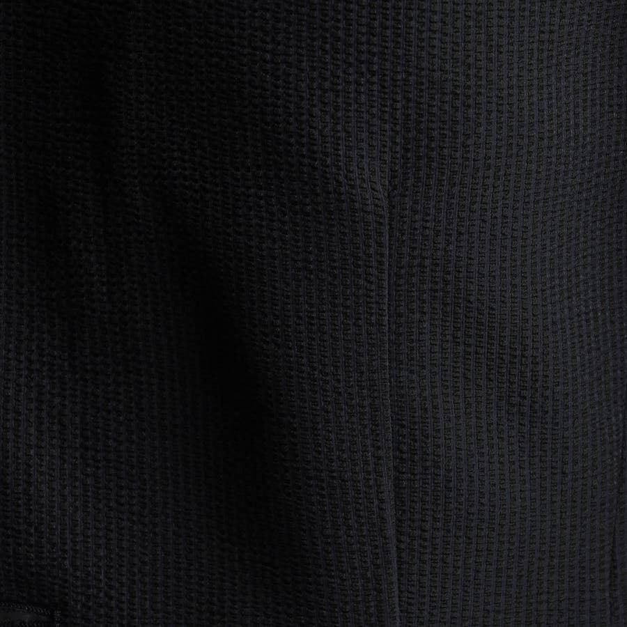 ポリエステルの糸の種類を変える事で、染めた時の縮率差でリップル(凹凸)感を出したシアサッカー素材。09オフは掠れたヘリンボン柄をプリント、67ネイビーは無地になります。タテヨコのマルチストレッチ性とエアリーな軽さ、吸水速乾の機能もプラスしたイージーケアが特徴です。