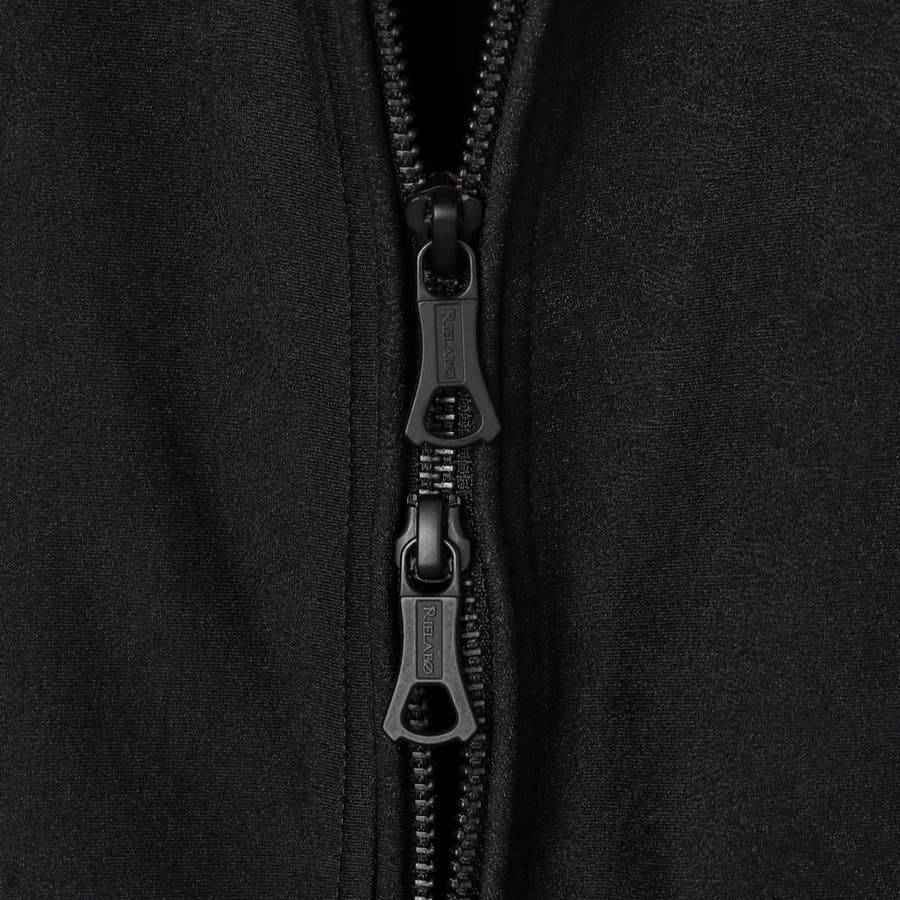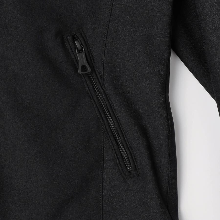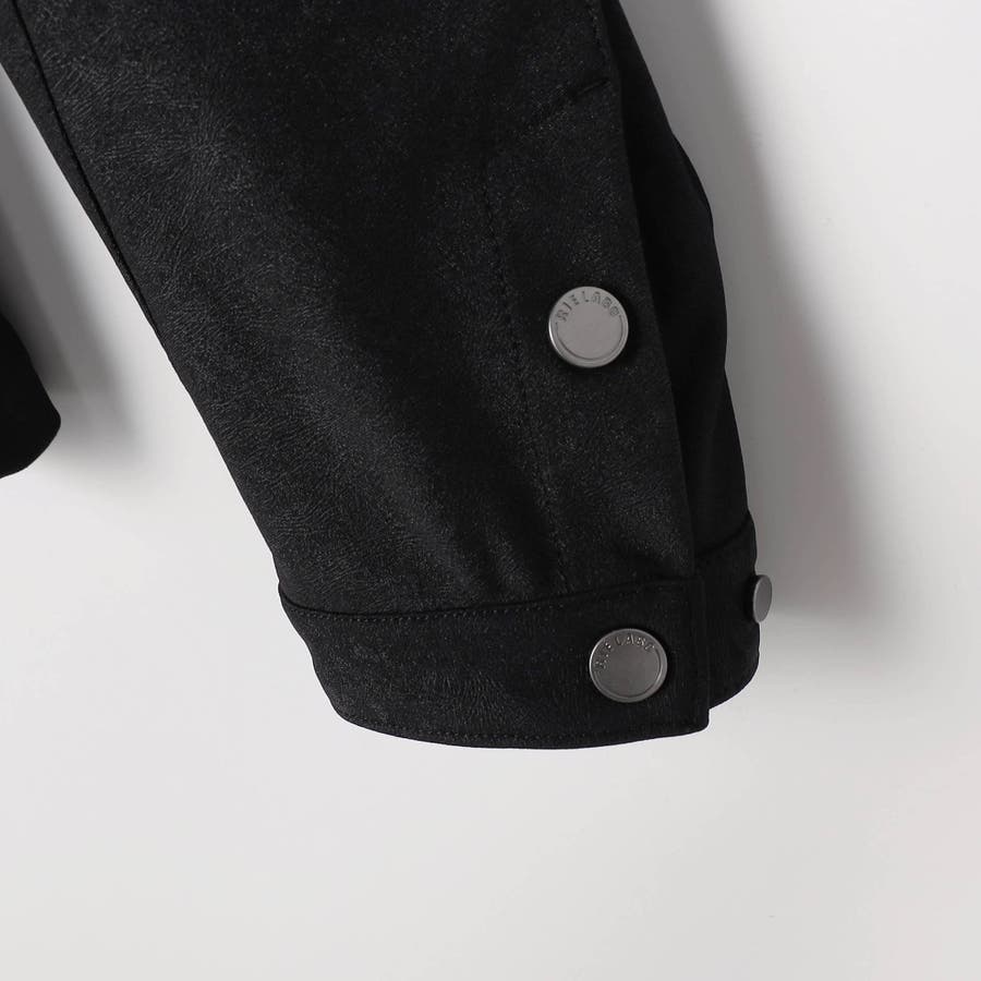 ナイロンジャージの2WAYストレッチ素材をベースに、リアルレザーの様なシボ感をエンボス加工して素材感を表現した国産素材です。プリッとした横張り感のあるしっかりとした肉感と、マルチで伸びるキックバックが効いたストレッチ性、リアルレザー様な質感が特徴です。