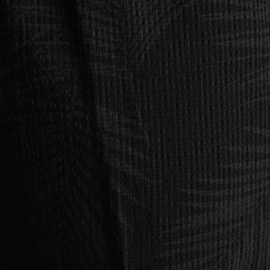 ポリエステルとレーヨンの混紡糸を使用した薄くて凹凸感のある変わり織り素材がベース。29グレー、49ブラックはムラ柄プリント、91その他2はオリエンタルなボタニカル柄プリントを施しています。シャリっとしたタッチと凹凸感ある素材感は肌離れが良く、メッシュの様な通気孔による高通気性は夏でもサラッとした快適な着心地を提供してくれます。家庭洗濯出来て、シワになり辛く、乾きやすいイージーケア性も魅力の素材です。