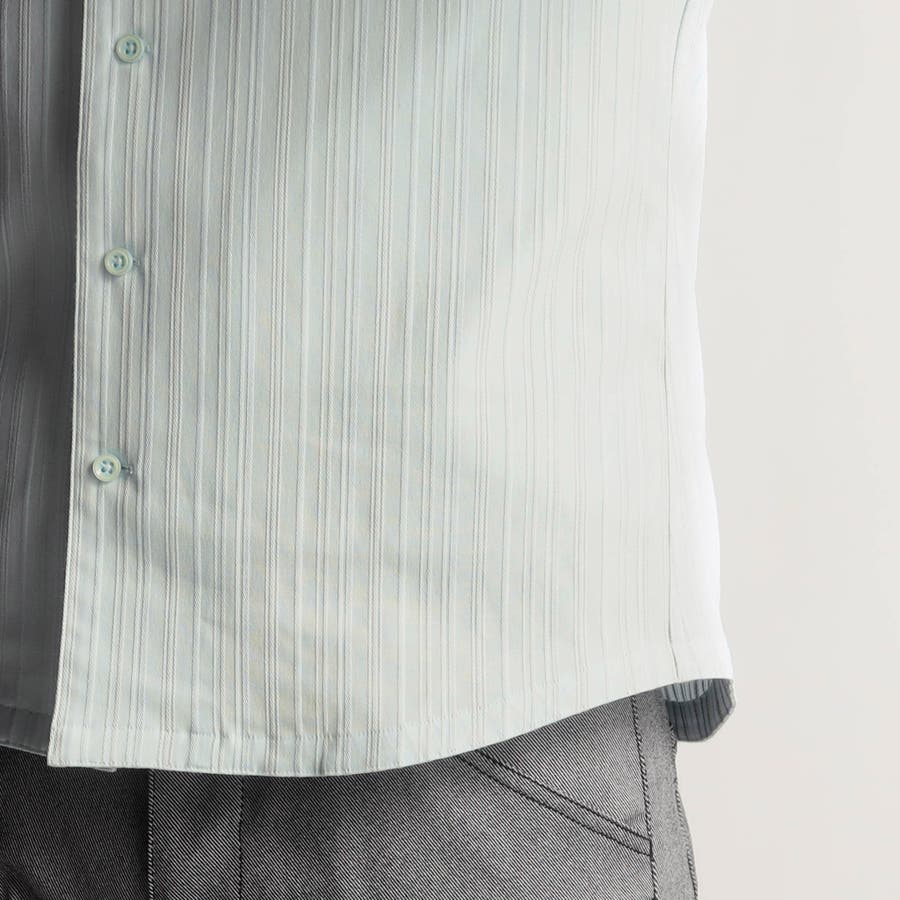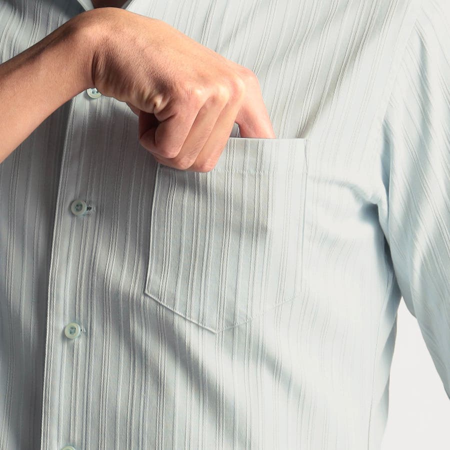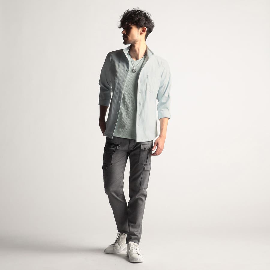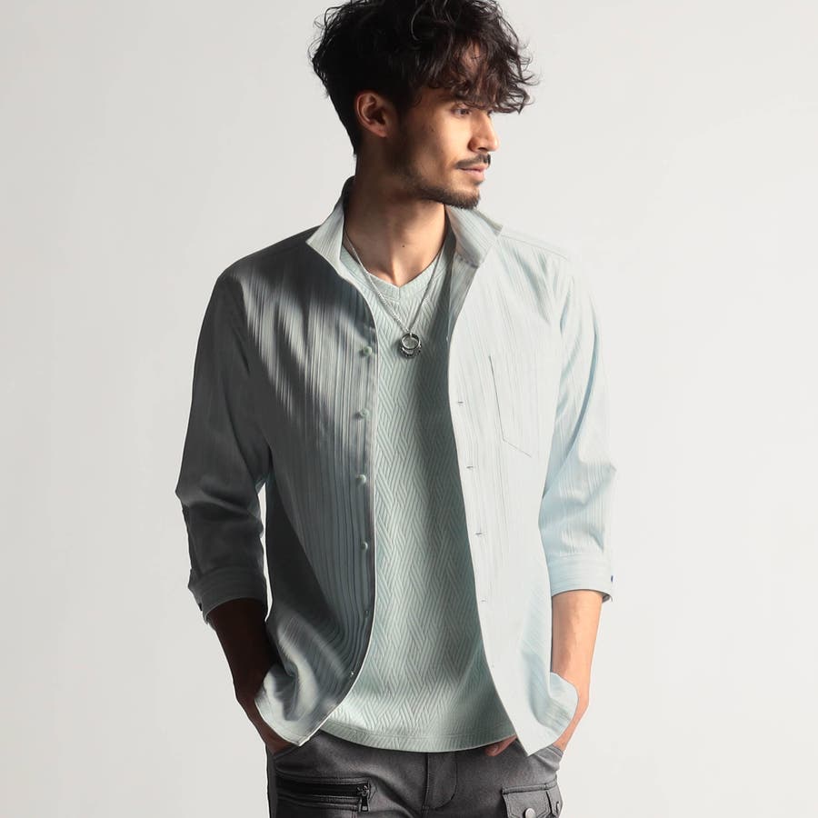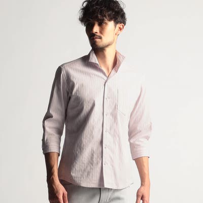 リバーシブルドビー7分袖スタンドカラーシャツ