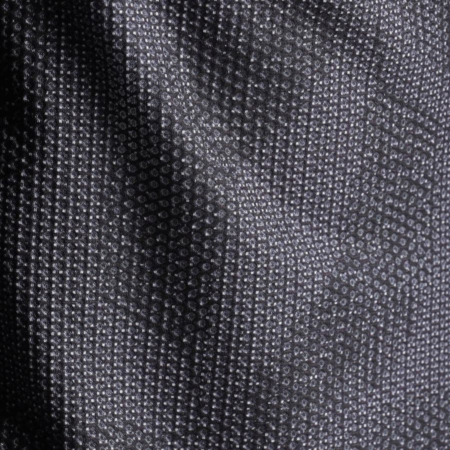ポリエステルとポリウレタンの混紡糸で編まれたメッシュ調のジャージー素材がベース。91はヘリンボン柄のプリント、92と93はボタニカルなリーフ柄プリントを施したオリジナル素材です。ソフトな風合いと通気性の高さ、軽量性、良く伸びるキックバック効いたストレッチ性でストレスフリーな着心地が特徴です。合繊になりますので家庭洗濯出来て、速乾性と防シワ性に優れた多機能素材でもあります。