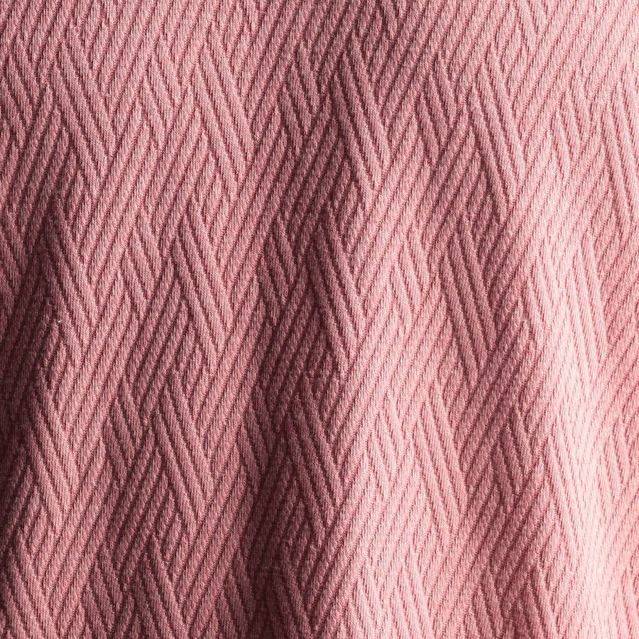 コットンとポリエステルの混紡糸を使用して編み立てた中肉素材のリンクスジャカ-ドで、バスケット柄風の独特な表面感とソリッドな陰影感がある生地になります。