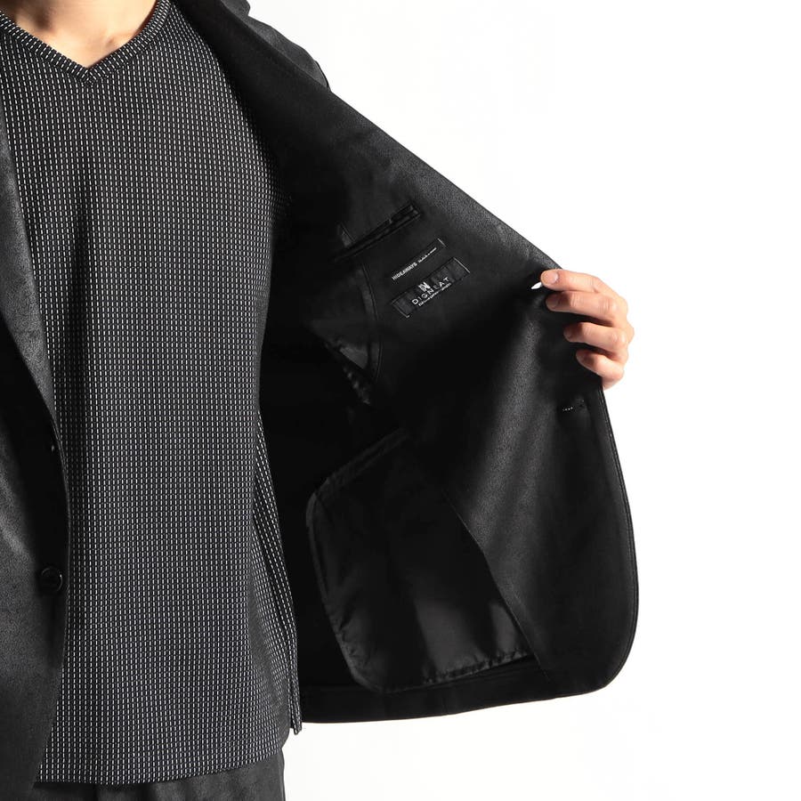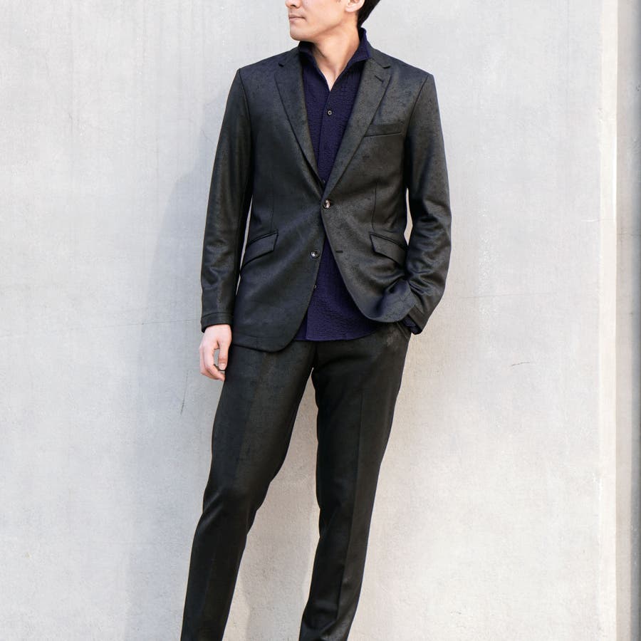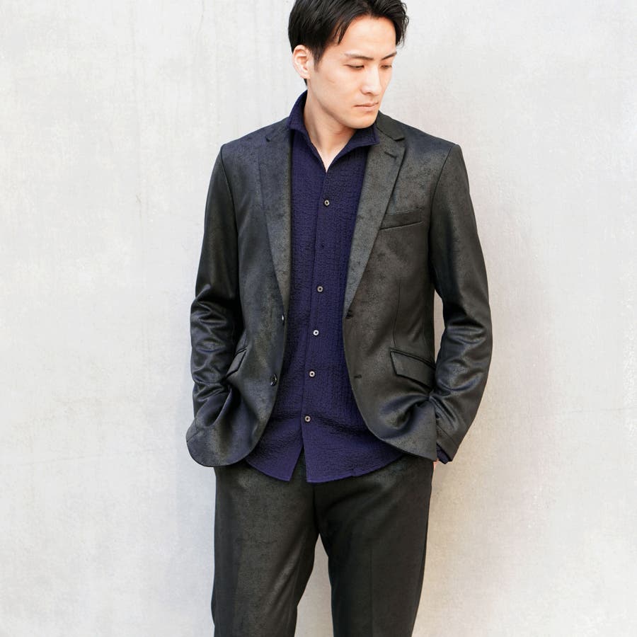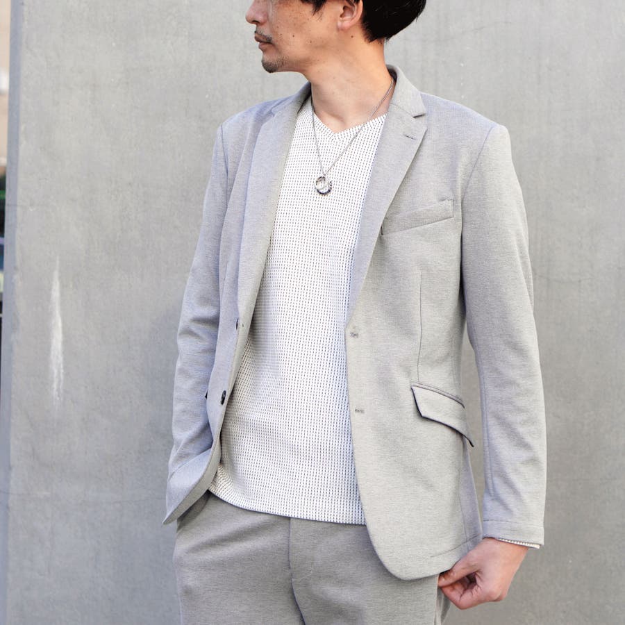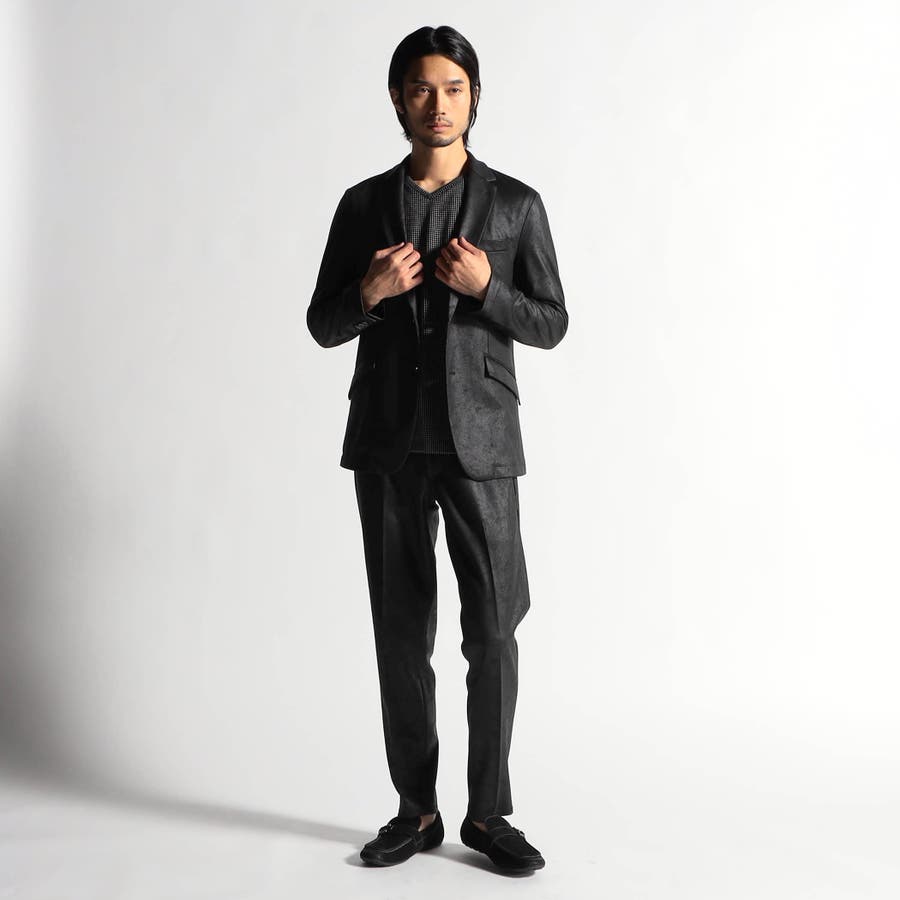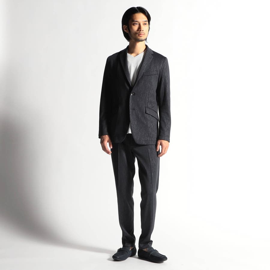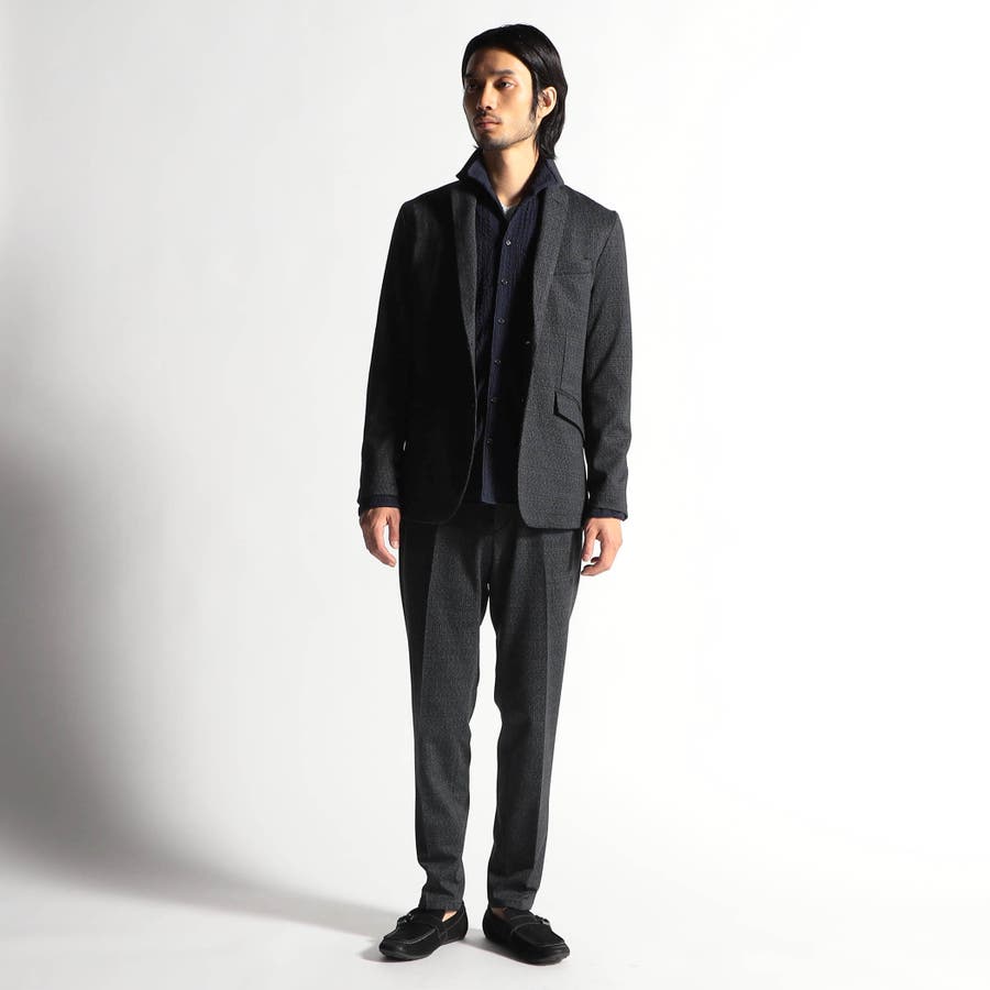 2つボタンタイプのラペルジャケット。背裏、脇のフラップポケット、袖口の本切羽等、よりフォーマルな仕様に近づける事で、ビジネスシーンでも着用出来る様にしております。同素材でパンツ「メーカー品番:4165-5130」を展開しておりますので、セットアップでのスタイリングもおすすめです。
