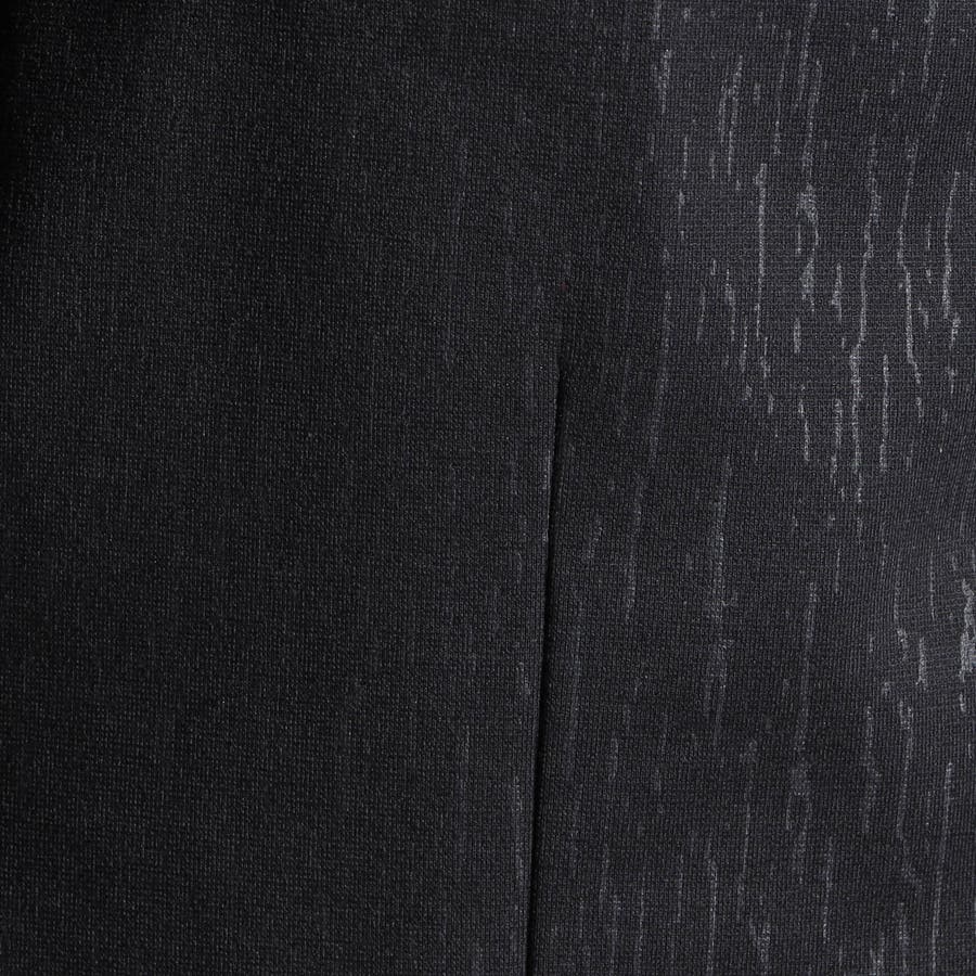 ポリエステル/レーヨン/ポリウレタンの混紡糸を編み立て、DIGNEATという形態安定性のあるポンチ素材を使用。横伸びが少ない伸縮性と保形性、耐久性抜群な素材です。適度な落ち感と滑らかなタッチが特長。レーヨン混の微妙な光沢感とプリプリしたヨコ張り感のある素材感は高級感があります。シンプルなカラー19トップグレー、91のレザー調プリントや92の雨柄(プリュイ)、93シャドーチェックのバリエーションに富んだ色展開も魅力の一着です。