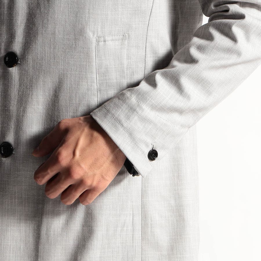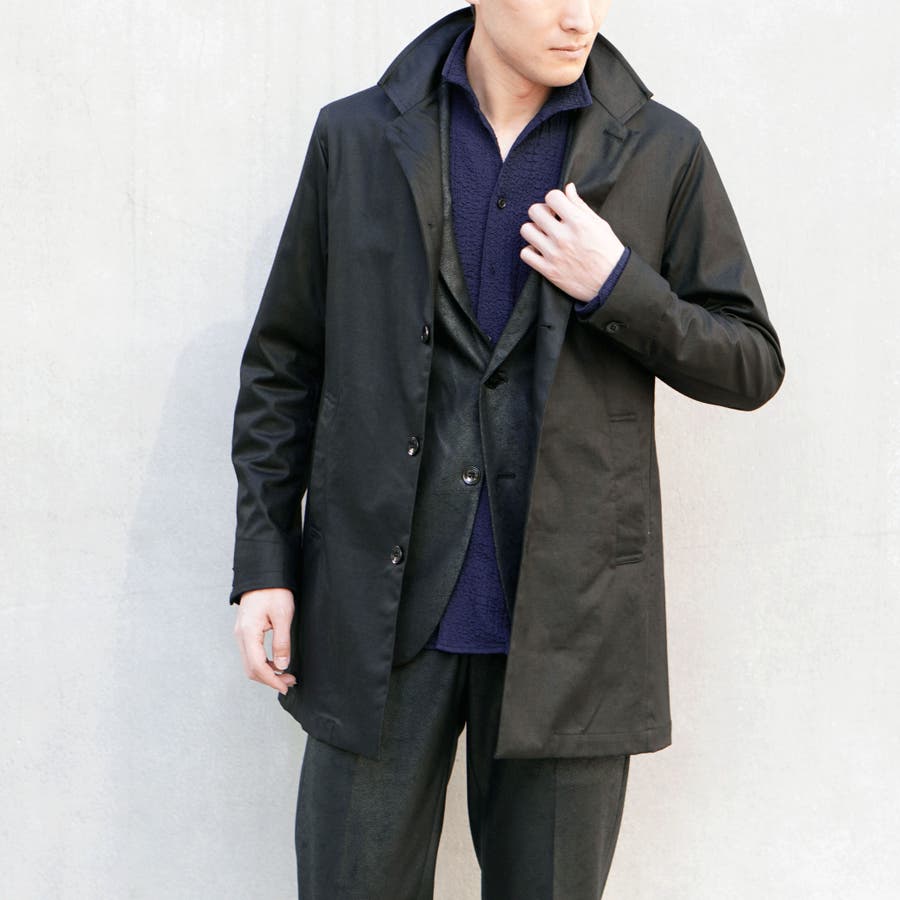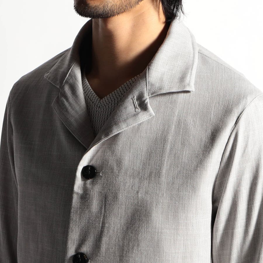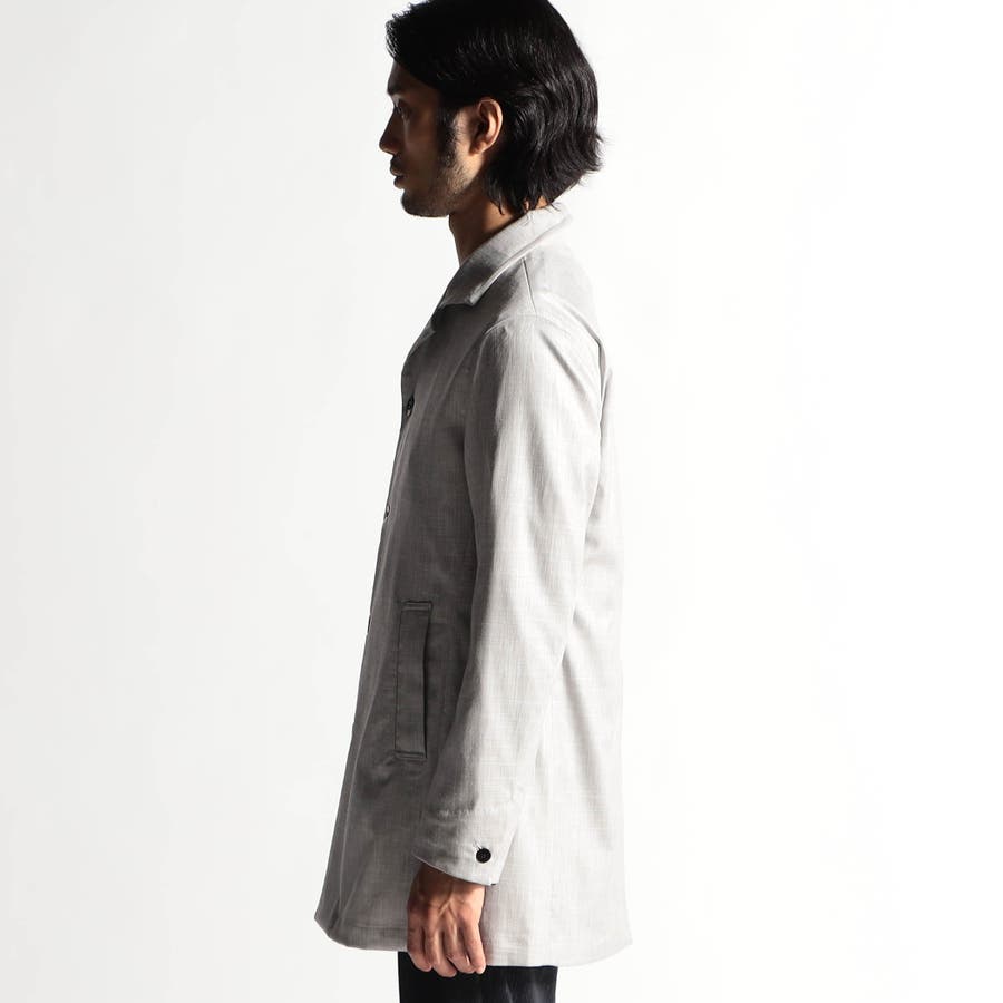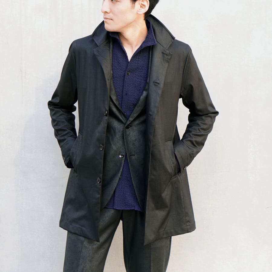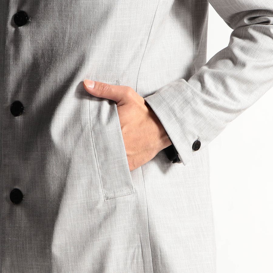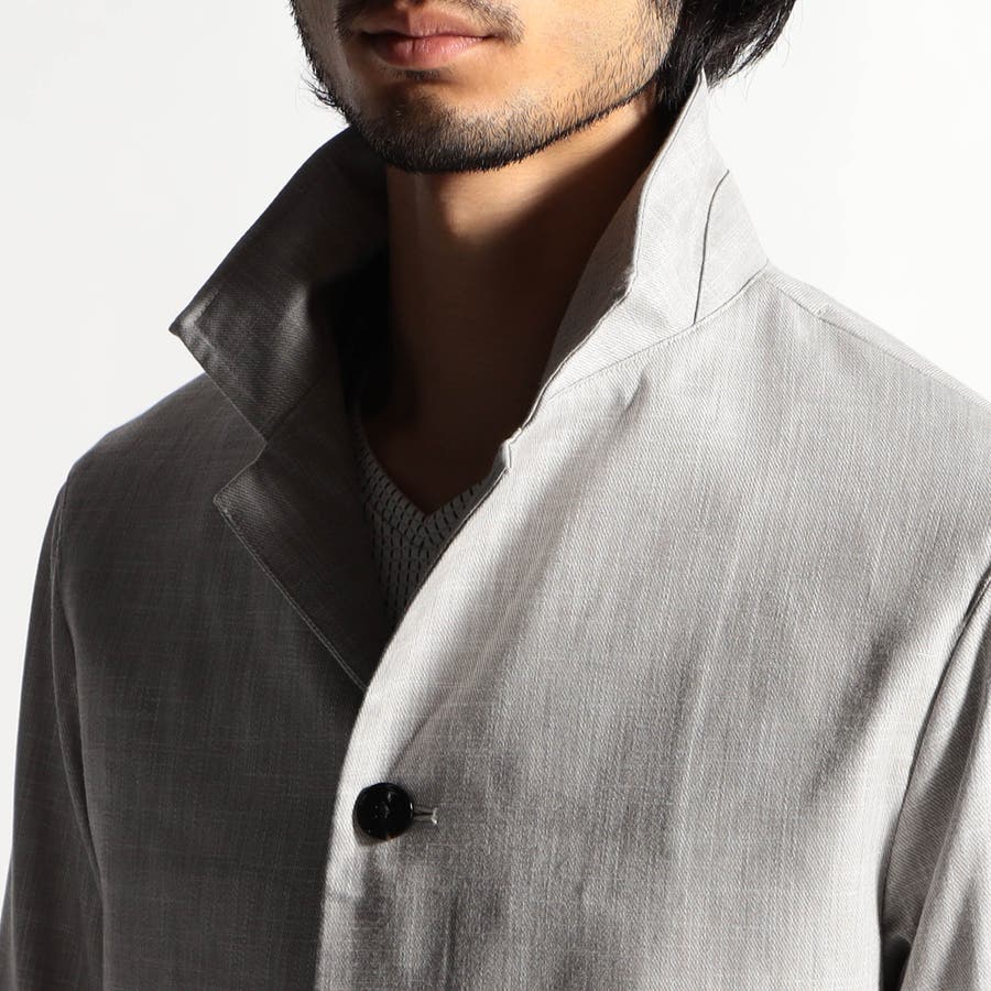 衿は立てても、畳んでチェスターコートのようにも着れる2way仕様のスタンドコート。一重仕様ですが、内ポケットの付いた使い勝手の良い仕様も嬉しい1着です。