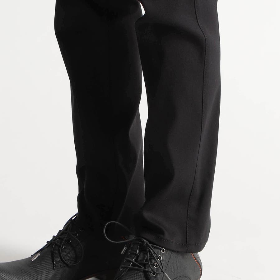 サイズ設定はタイト目。ストレートシルエットにする事でスッキリとした見た目になるようにしています。膝裏の切り替えでクセ取りをする事で足のラインに沿った、立体的なシルエットを作り上げています。