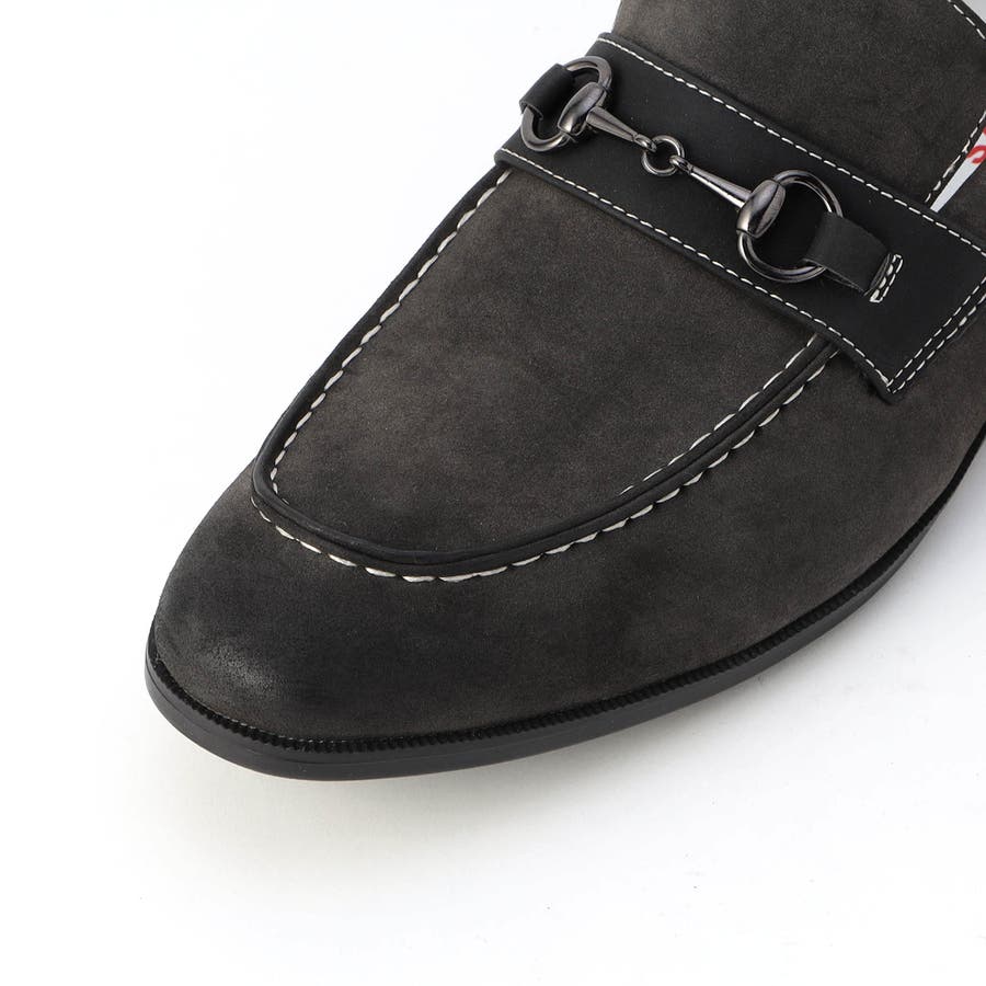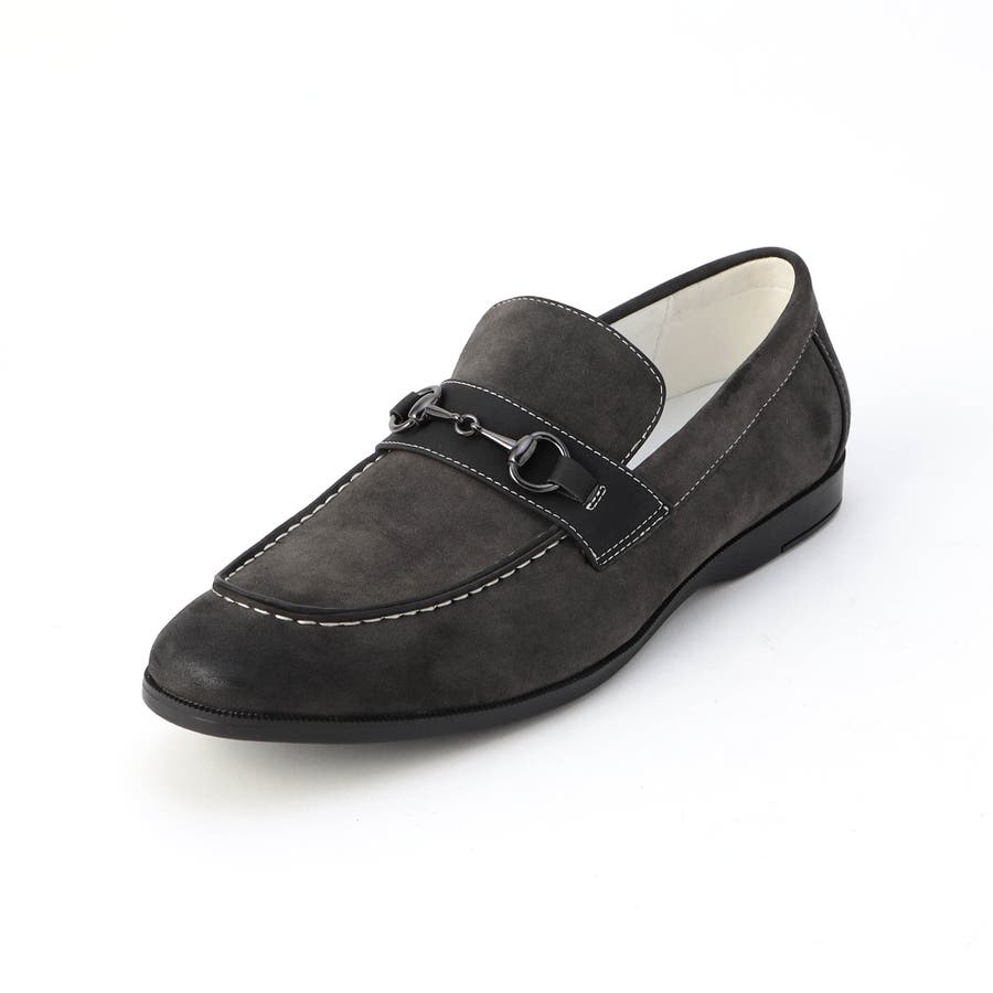 ローファーデザインのスニーカーソールスリッポンシューズ。シャープなシルエットで少し細長い綺麗なラスト(木型)を採用。アクセントにシンセティックレザーとビット金具、配色の白ステッチを入れてカジュアル感をプラスし、細部にまでこだわっています。少しヒールが付いた合成ゴムソールを採用してスニーカーライクな履き心地です。67ネイビーのデニムだけソールをオフ白にしてデッキシューズのイメージにしています。39チャコールのみ最終仕上げで手作業によるアンティーク加工を施して高級感のある仕上がりにしてます。