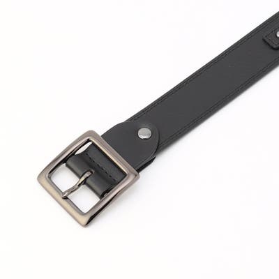 帯部分はシボ感のある牛革を使用しています。金具類はブラックニッケルに統一することで、より一層重厚感を高めました。