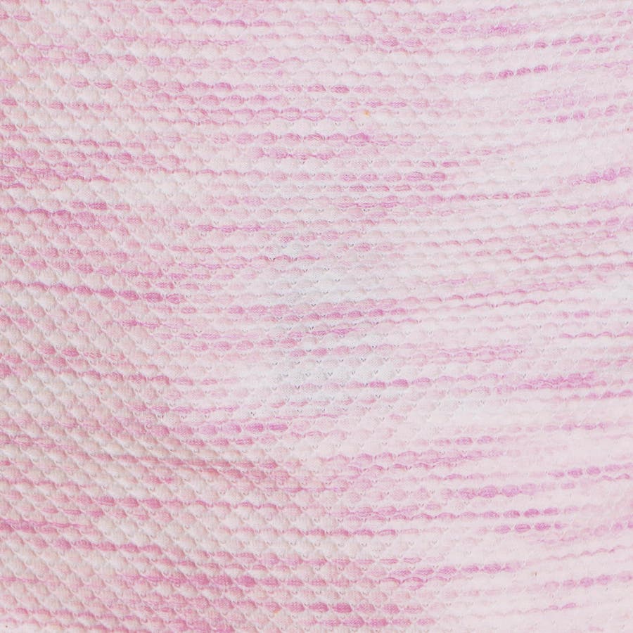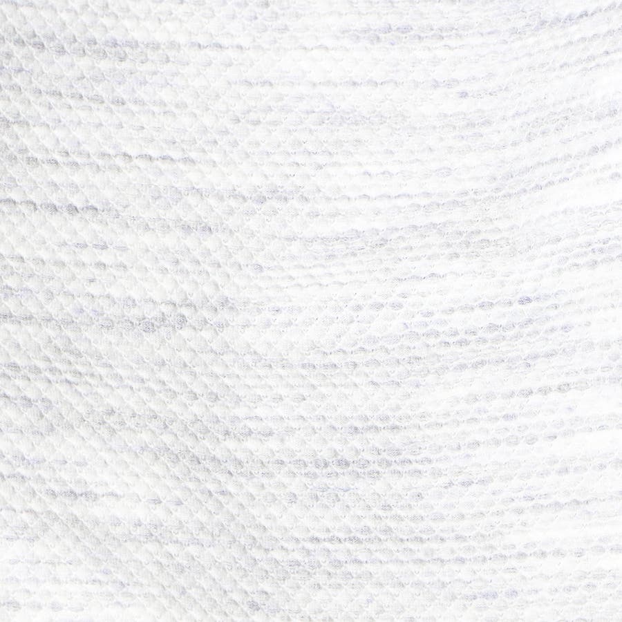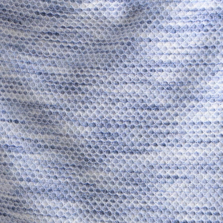 ポリエステルと綿糸の不規則な引き揃えと片染めにより、独特なメランジ感を表現したハニカムジャカ-ド生地になります。ポリウレタン混によりストレッチ性も高めている為、快適な着用感も実現しています。