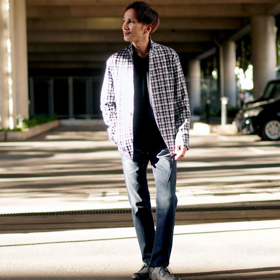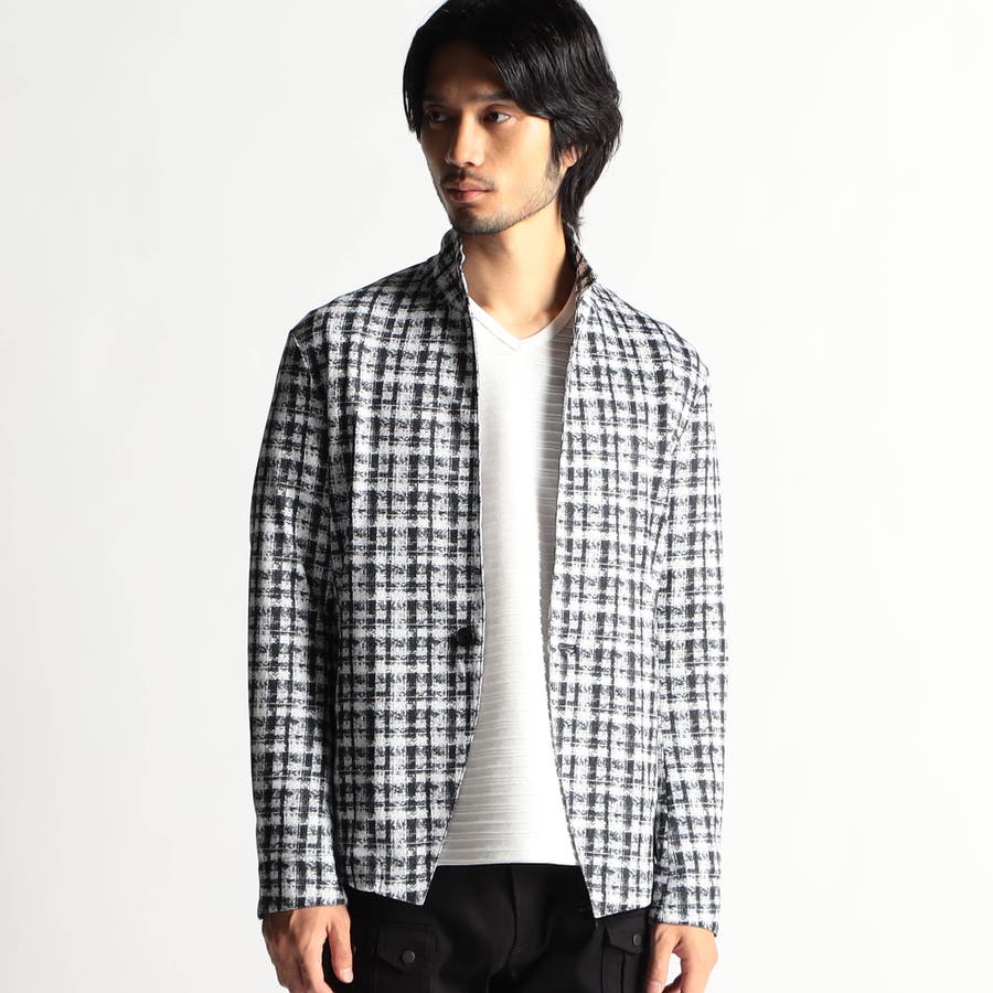 総柄プリントアラカルト展開のカットジャケットです。新柄にカラー92その他3グレンチェックを追加しました。衿端にワイヤ-を通したスタンドカラ-仕様ですが、折り返してラペル風でも着用できます。素材の軽さからシャツライク、カ-ディガンライクに羽織って着られるモ-ドな印象の大人ジャケットです。柄によって雰囲気がガラリと変わるので、ニ-ズによリ幅広いご提案が可能な一着になっています。