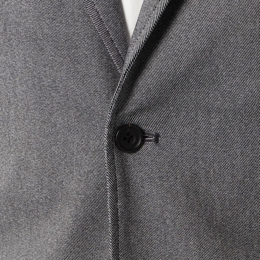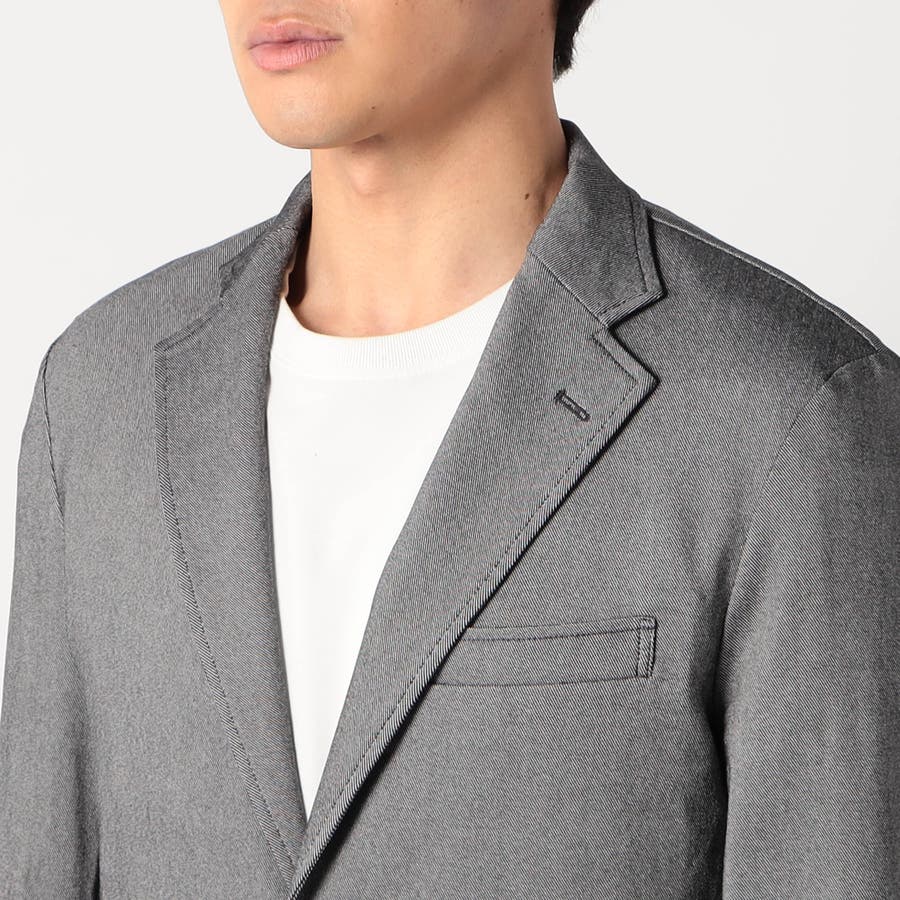 ウエストの絞りを少なくして、ラペルも少し太めにしたブレザーのようなシルエットにしています。