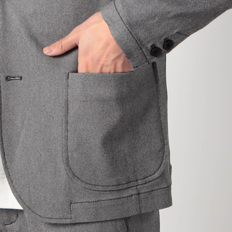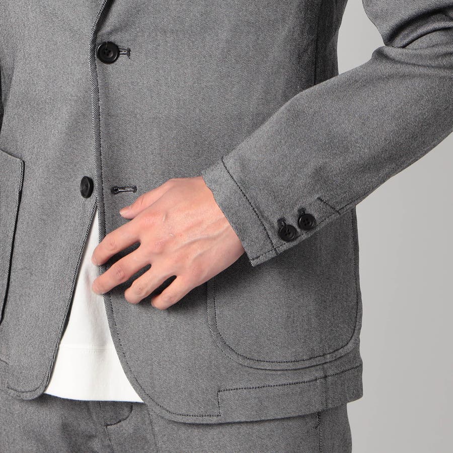 ウエストの絞りが少なくトラッド雰囲気を取り入れた2つ釦、パッチポケット仕様でカジュアルでも仕事使いでも使い分けられるのが特徴です。