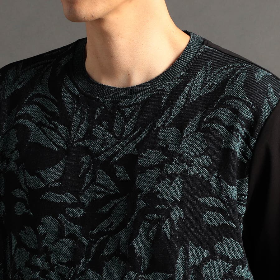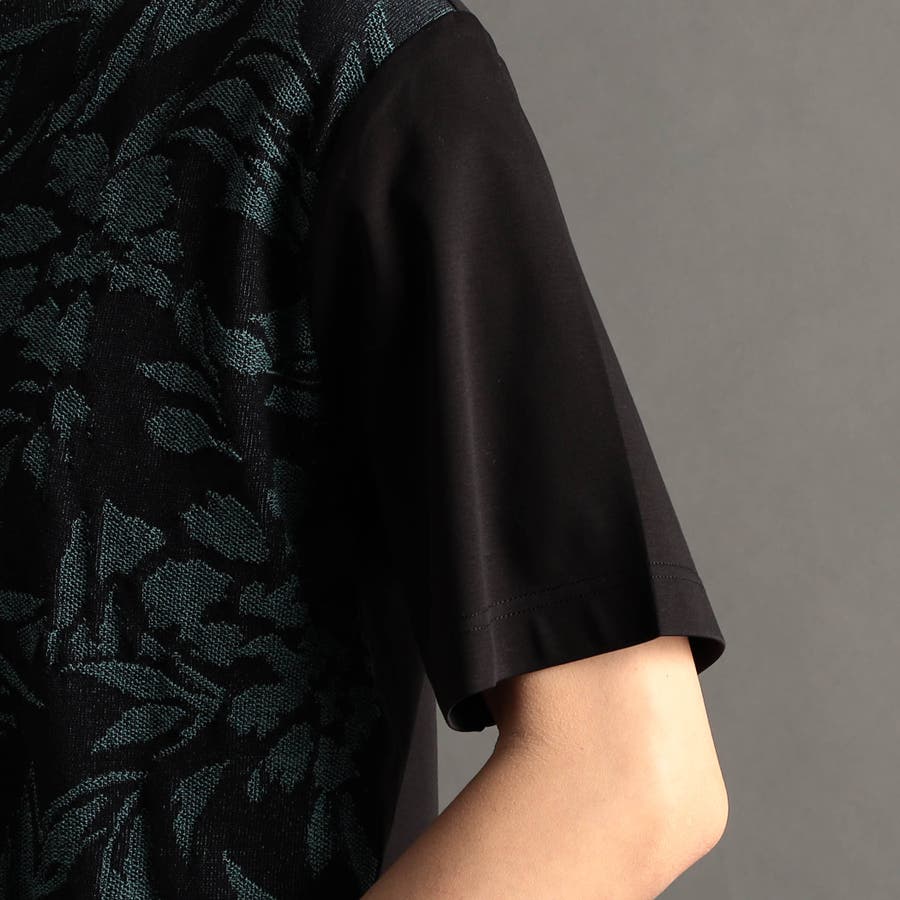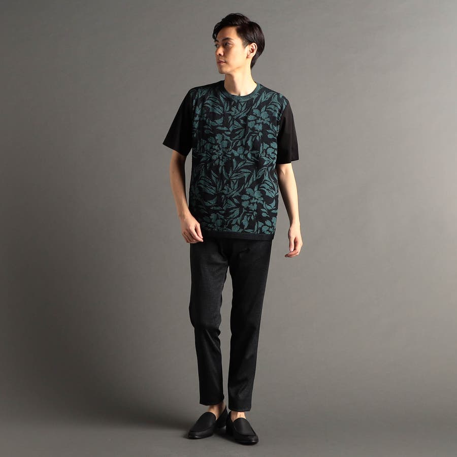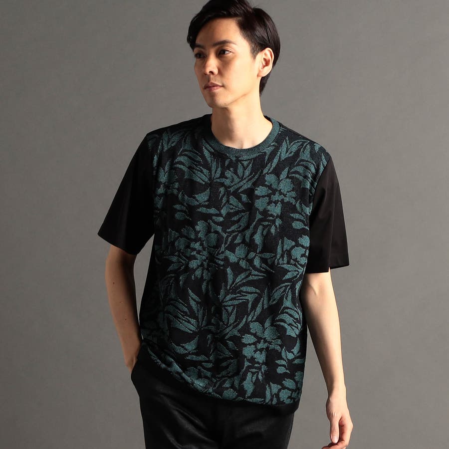 ニットでアートな遊び心を効かせたデザインTシャツ。編地変化と色使いでボタニカル柄を表現。一枚で夏のコーディネートの主役になります。