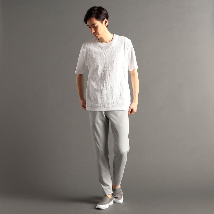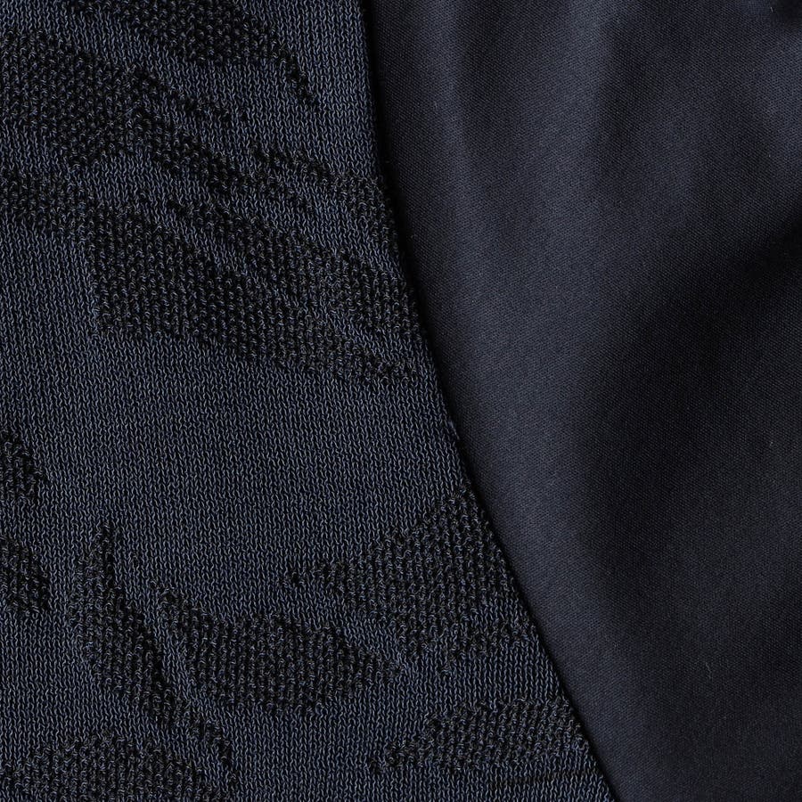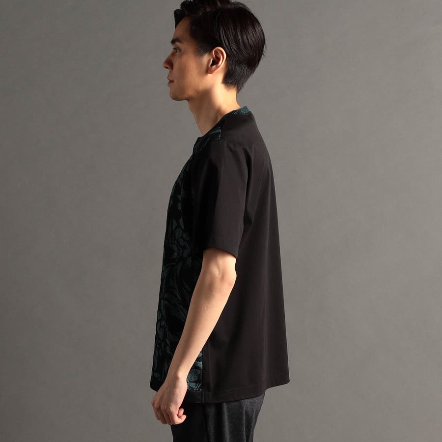 前身頃はドライタッチな綿ポリエステル素材のニット。後身頃・袖には滑らかな肌触りのシルケットスムース生地を使用。ニット特有のデザイン性にカットソーの軽やかさをプラスしたニットソーTシャツです。