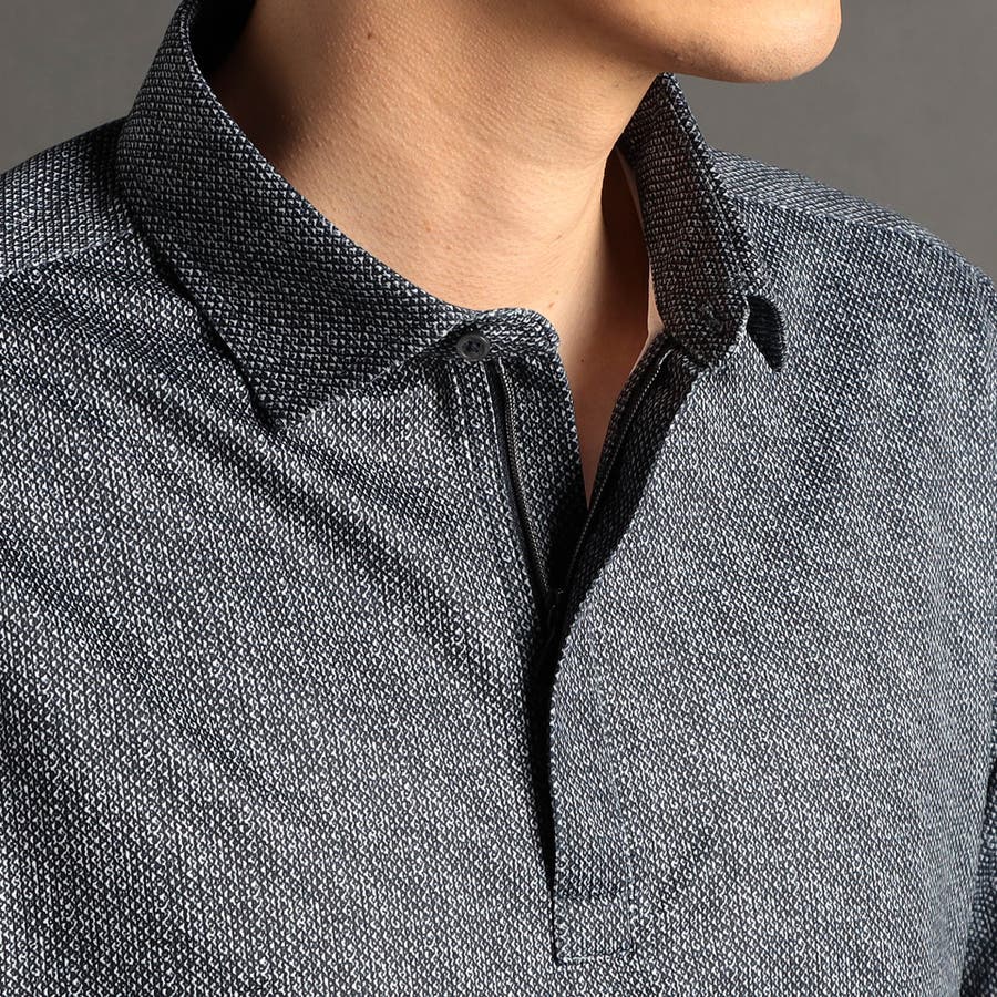 スポーティなZIPポロシャツ。ショートレギュラーカラーと比翼ZIP仕様のミニマムなデザイン。メランジプリントがこなれ感を醸し出す大人顔のポロシャツです。