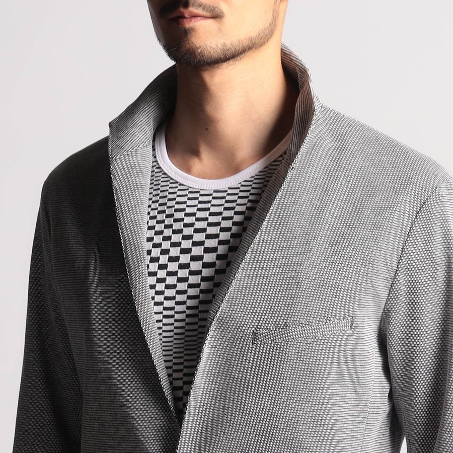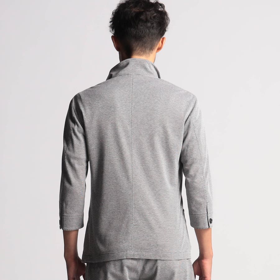 衿を立てても着れる七分袖のイタリアンカラージャケット。衿先からフロントカットをシャープなラインでエッジを効かせたデザインが特徴です。衿はスタンドカラーとして立ててもラペルとして寝かしても着れる設定で、衿端にはワイヤーを入れていますので衿を立てた時にVゾーンを綺麗に作れます。大身返しの一重仕様で軽く仕上げていますので、カットソーのカーディガン感覚で着用出来ます。
