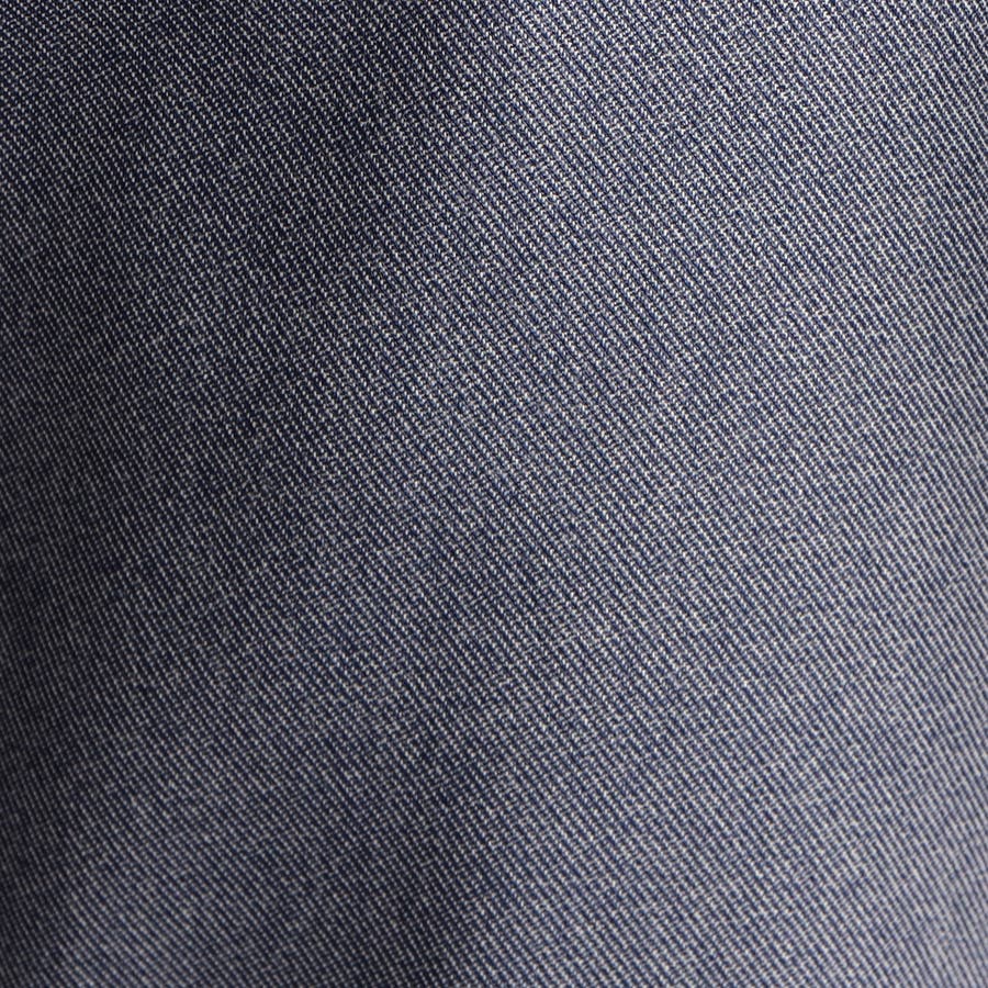 吸湿性の高い再生繊維のレーヨン糸とプリッとしたコシを出すナイロン糸を使用したハイパワーストレッチのツイル素材です。ポリウレタン混の良く伸びてキックバックが利いたストレッチ感、シャリみのあるタッチ感は肌触りも抜群です。汚れが付きづらい撥水加工をプラスしています。