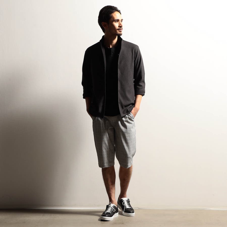 シンプルで綺麗めデザインのイージーパンツ仕様のバミューダパンツ(膝丈)。ピタッとした短パンは人を選びますので、ヒップ廻りはゆとりを出して裾口を少し広くした程好いサイズ感に設定しています。ウエストはイージーパンツ仕様ですが、スピンドルを内側にしまえばベルトを使用してジャケットスタイルに対応出来ます。裏の別布にはメッシュ裏地を使用して清涼感を更に高めています。リエラボならではのバックスタイルにこだわったトリプルループと別注本水牛釦を使ったポケットで、穿き着心地抜群の大人の短パンに仕上げています。