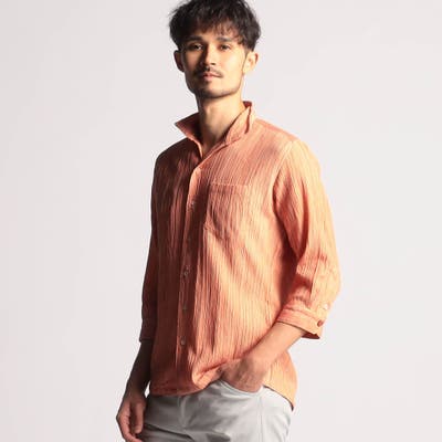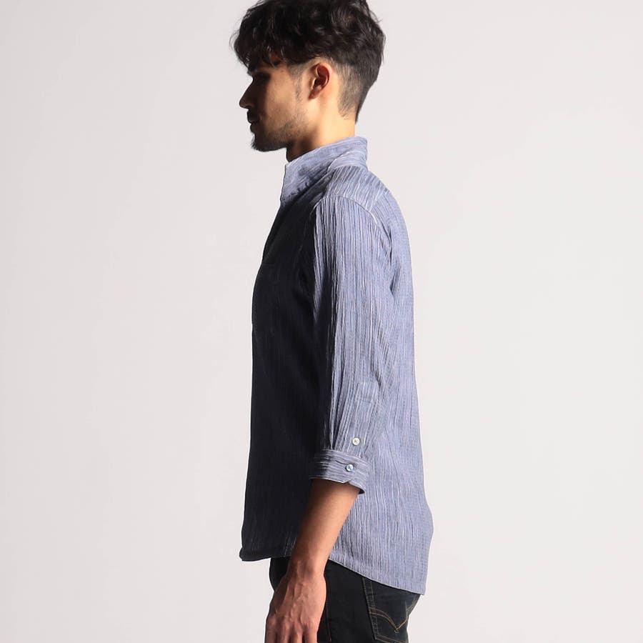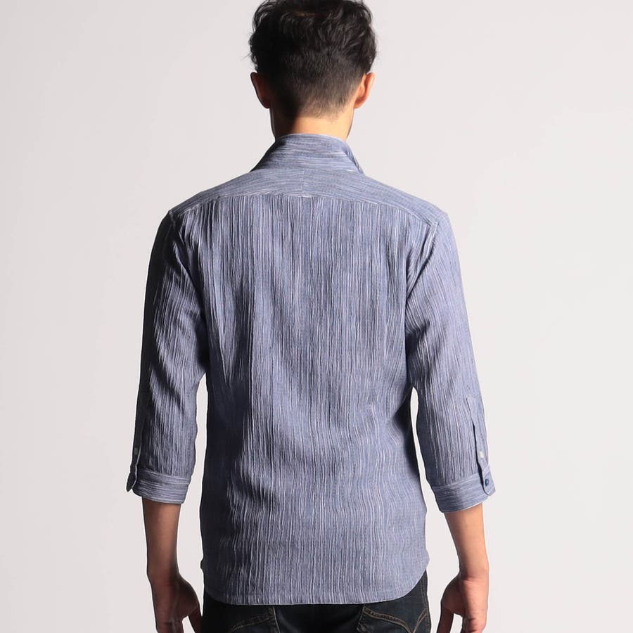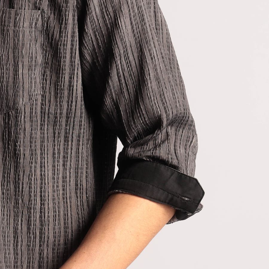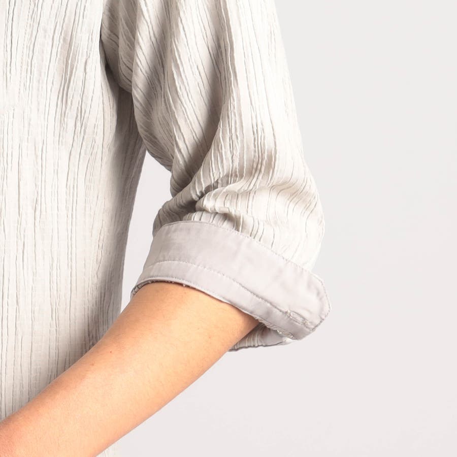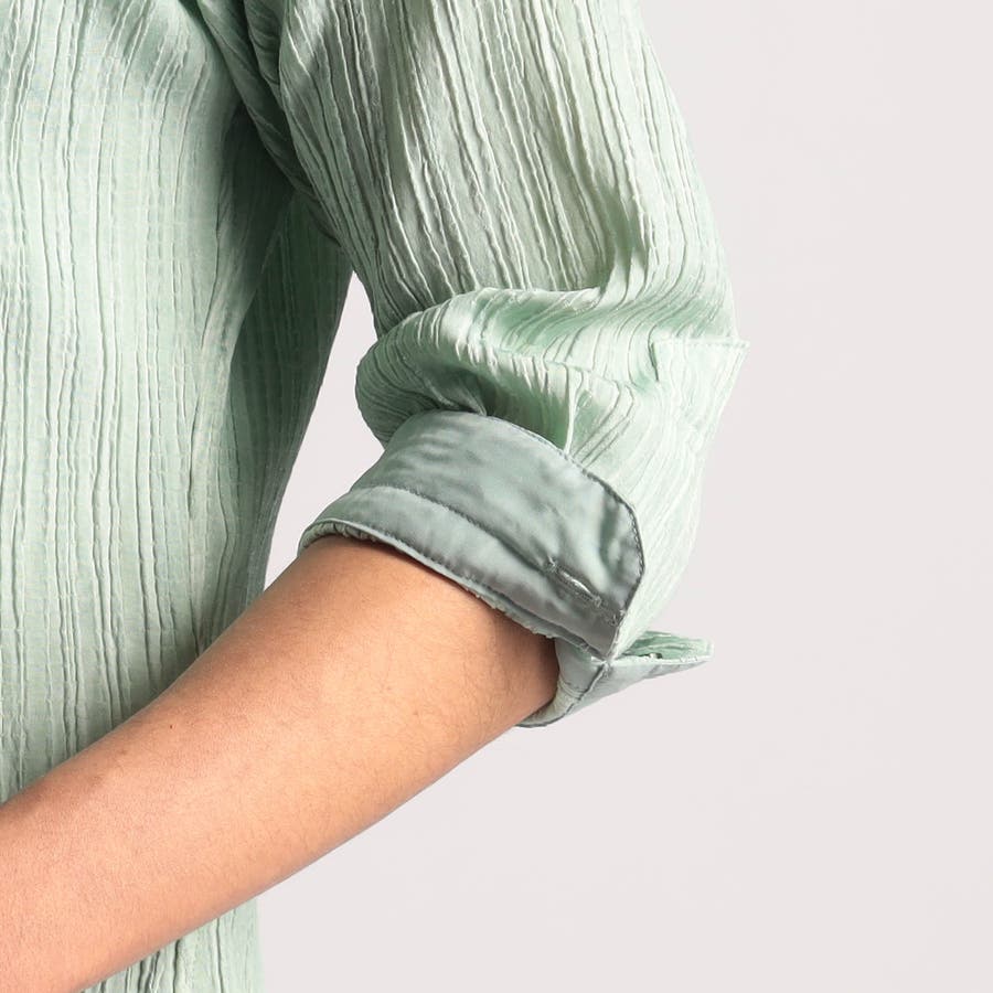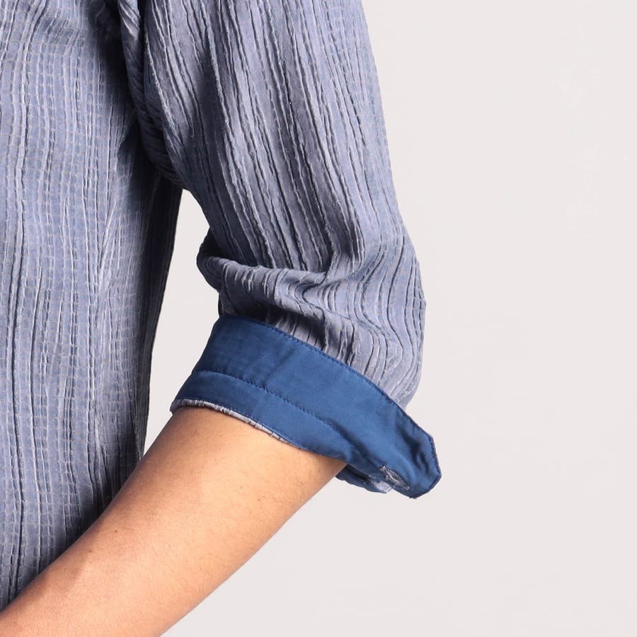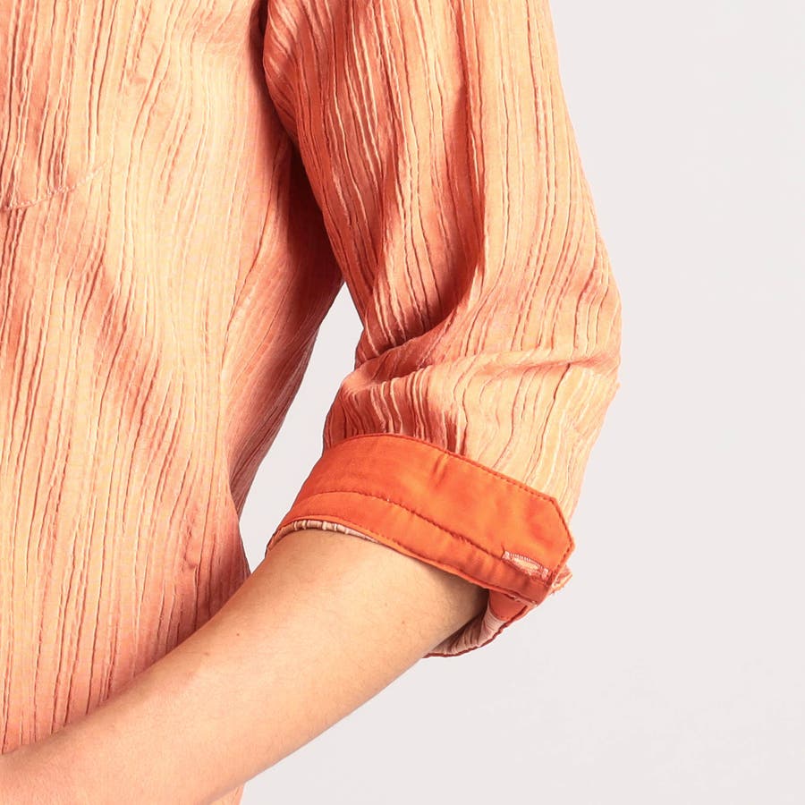 カラープリーツ7分袖スタンドカラーシャツ