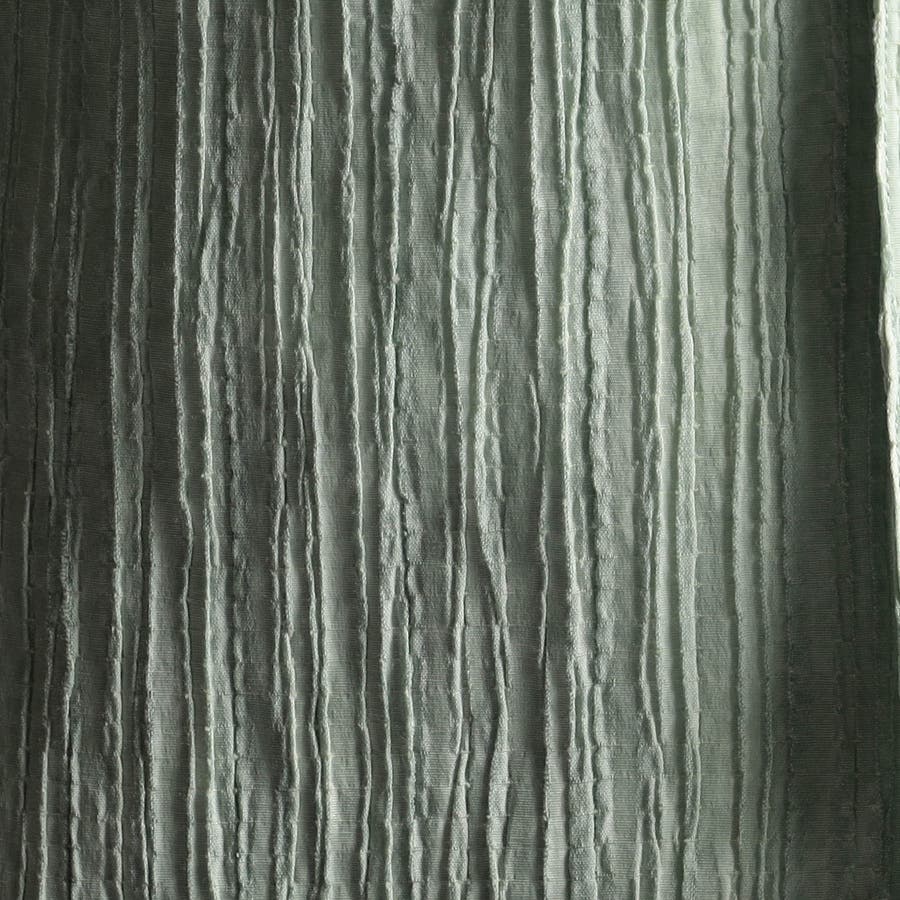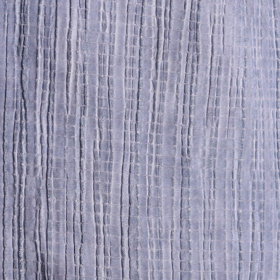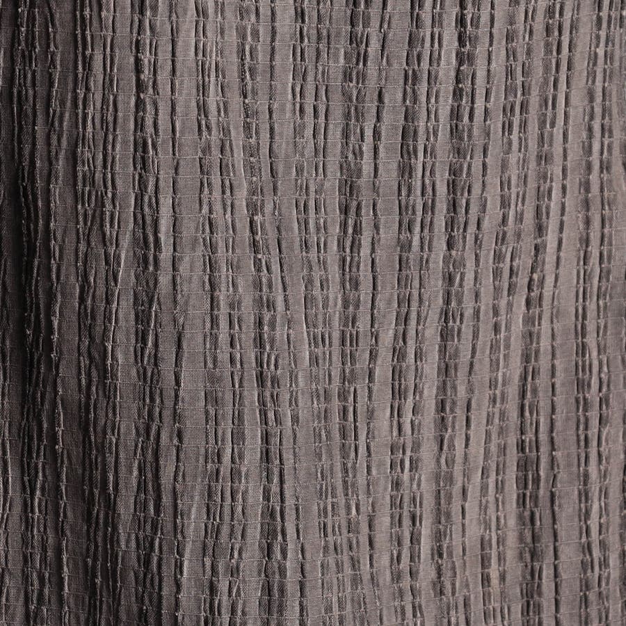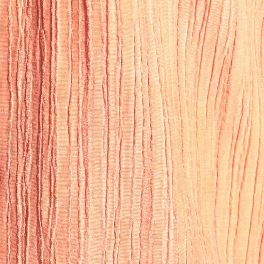 ヨコ糸にポリウレタンの伸びる糸を入れてランダムなプリーツ加工をした生地に顔料系のカラーコーティングを施した素材です。レーヨン混になりますので、しなやかなタッチ感とストレッチ性があります。カラーコーティングした事で少しシャリっとした硬い風合いと、プリーツの山谷で色の差が出る面白い素材です。