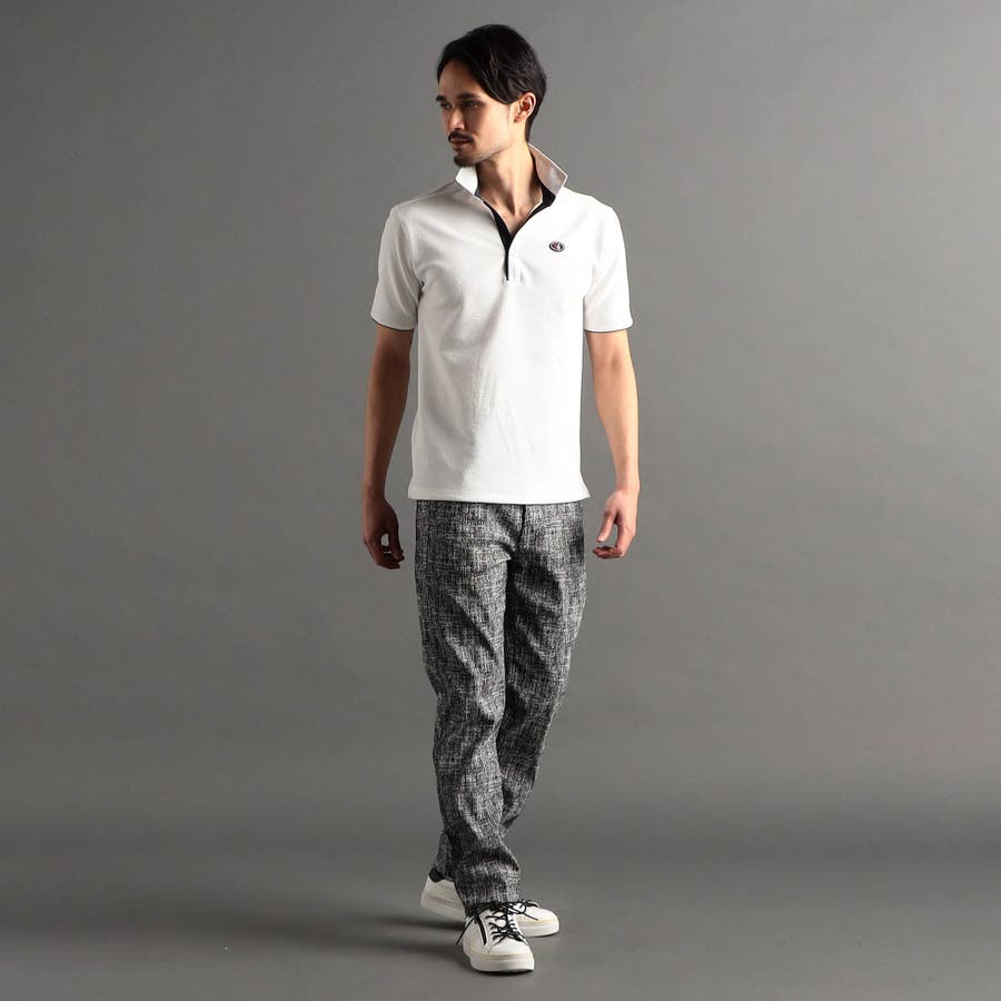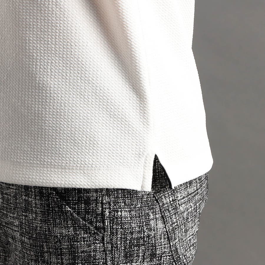張りのある素材感でスポーティに着こなせるスキッパーポロシャツ。要所の別生地には布帛のシャドーチェックジャカードを使い上品なギミックをプラスしました。しっかりとした素材でスキッパーポロシャツのポイントである前開きのVゾーンを綺麗に保ちます。衿に仕込んだワイヤー、袖口、裾のサイドスリット等、ワンライク上の仕様を随所に盛り込んだポロシャツに仕上げています
