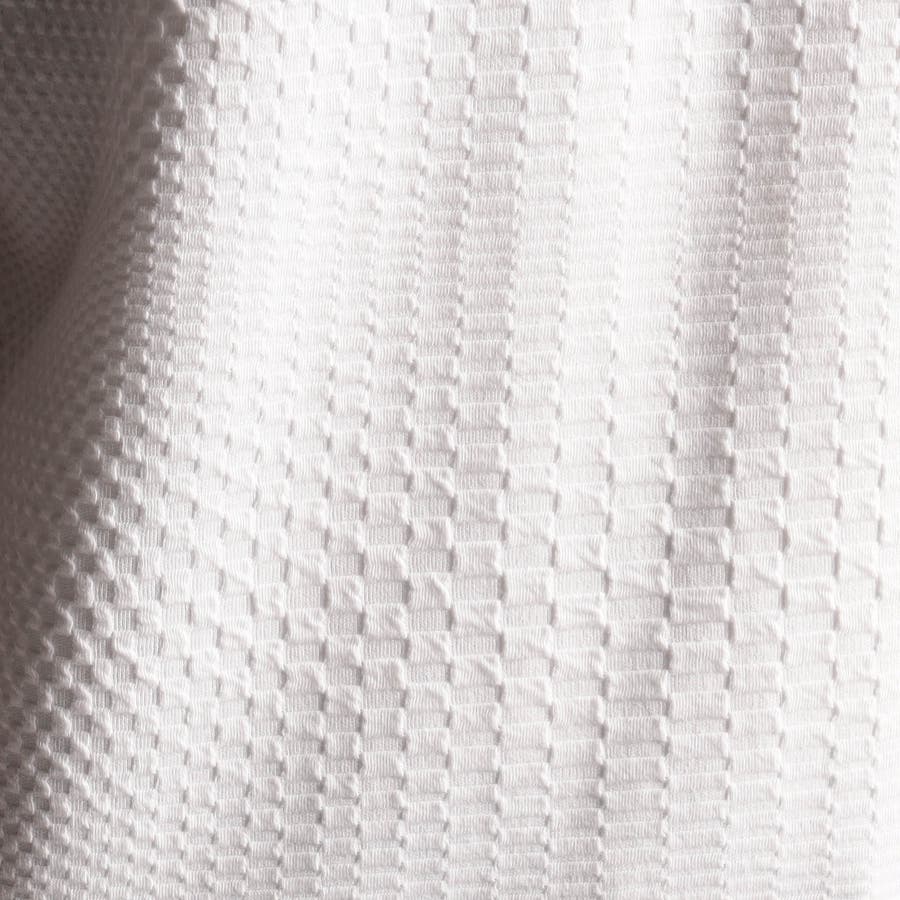 市松柄をアレンジしたジオメトリック調ブリスタージャカード。ブリスター<膨れ>編みという特殊な技法で空気が入っているかの様なふっくらとした凹凸感を表現しています。伸縮性を改善し、縦横のキックバックとテンションを良くすることで、着脱し易く着心地の良い素材に進化しました。
