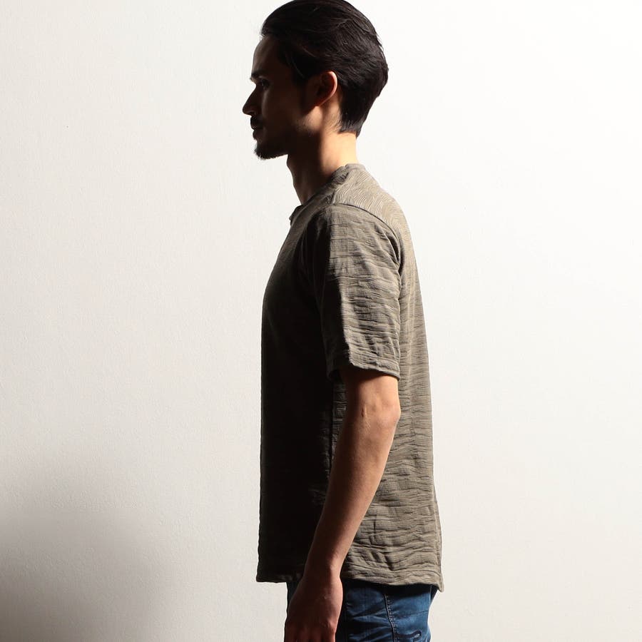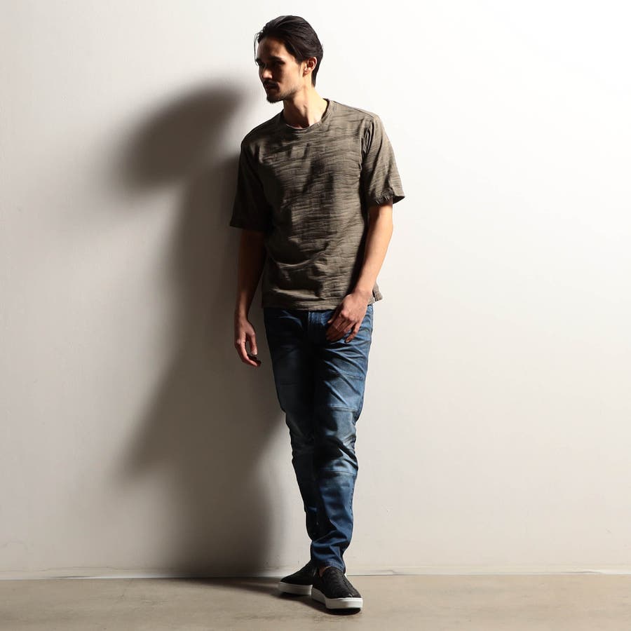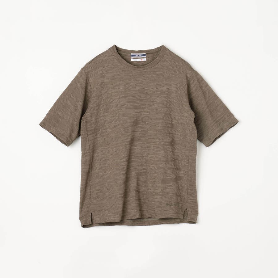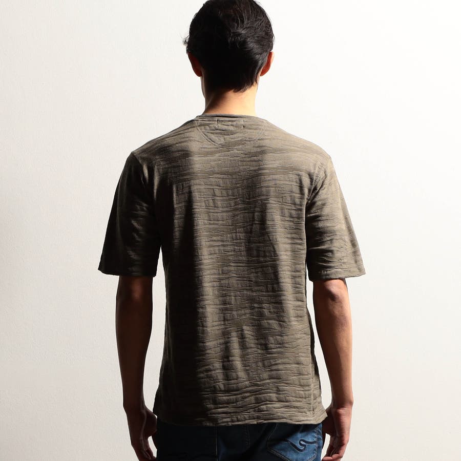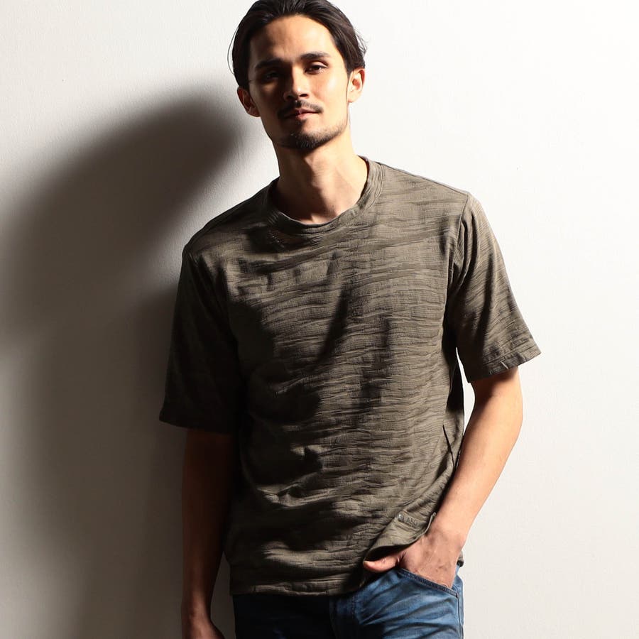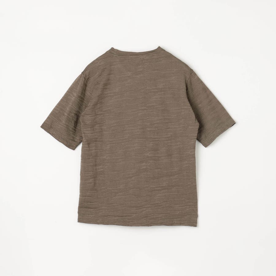 薄手な迷彩柄ジャカード素材を使用したクルーネックカットソーです。神奈川県川崎にある縫製工場で製造した日本製のプレミアムな一着。ジャカード組織によるメッシュライクな素材感が夏場まで涼しげにご着用いただけます。衿ぐりの伸び止めテープ始末、脇のスリット仕様をポイントに、脇の縫い代には消臭抗菌テープを入れて機能性も追加したこだわりの仕上がりです。