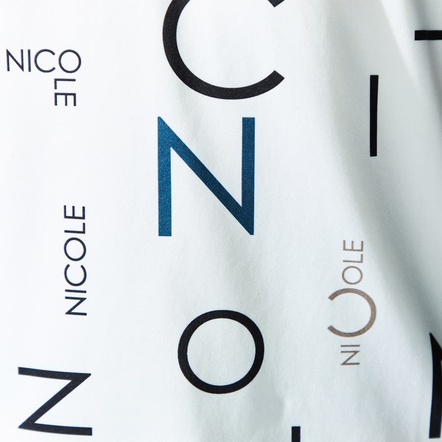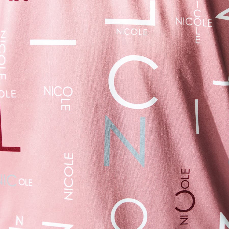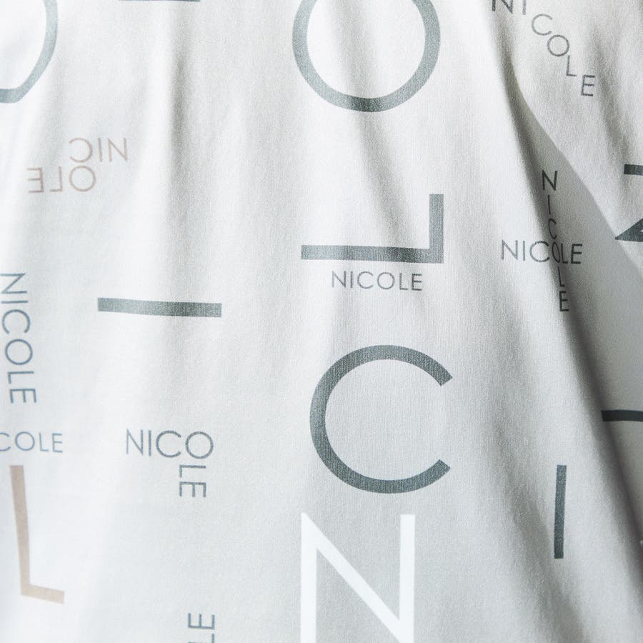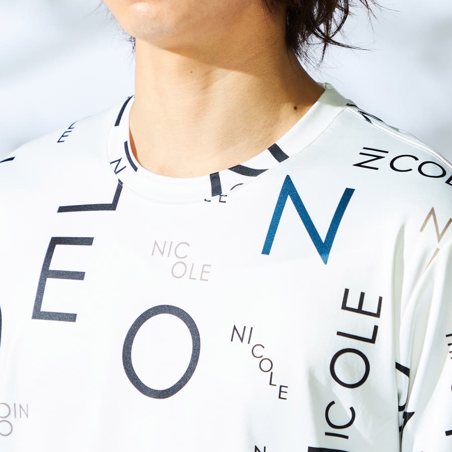 WEB限定、NICOLEのロゴをランダムに配置した総柄プリントの半袖T-SHIRTSになります。インパクトのあるデザインが目を惹くT-SHIRTSになります。
