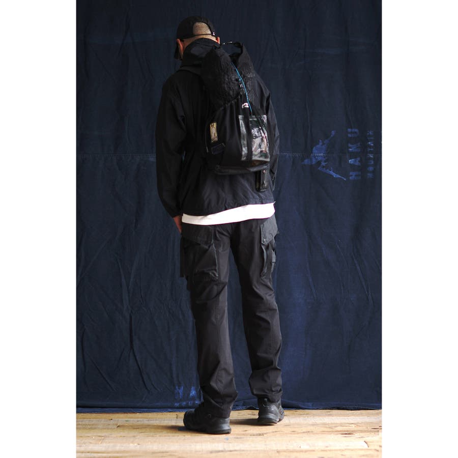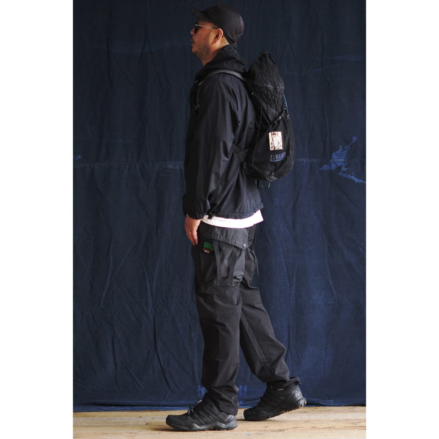 ブラックの素材はタフな強度を誇る「コーデュラナイロン」を使用、さらに“二重織り”で秋冬でも対応可能な厚みを出し、裏面はパイル組織仕様で肌触りにもこだわりました。さらにはタテヨコ斜めにストレッチしてくれる超ハイスペックファブリックです。