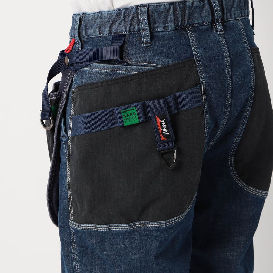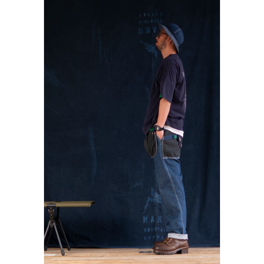 内股に配したガゼットクロッチで広範囲な可動域を確保、ウエストにゴムは入っていますがウィービングベルトやドローコードなどの調節ギアは付属していませんので、お手持ちのベルトでお好みのフィットにしていただけます。