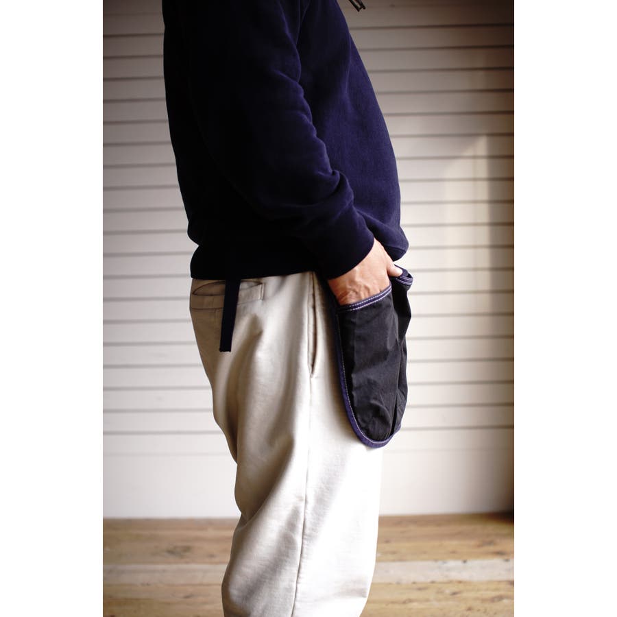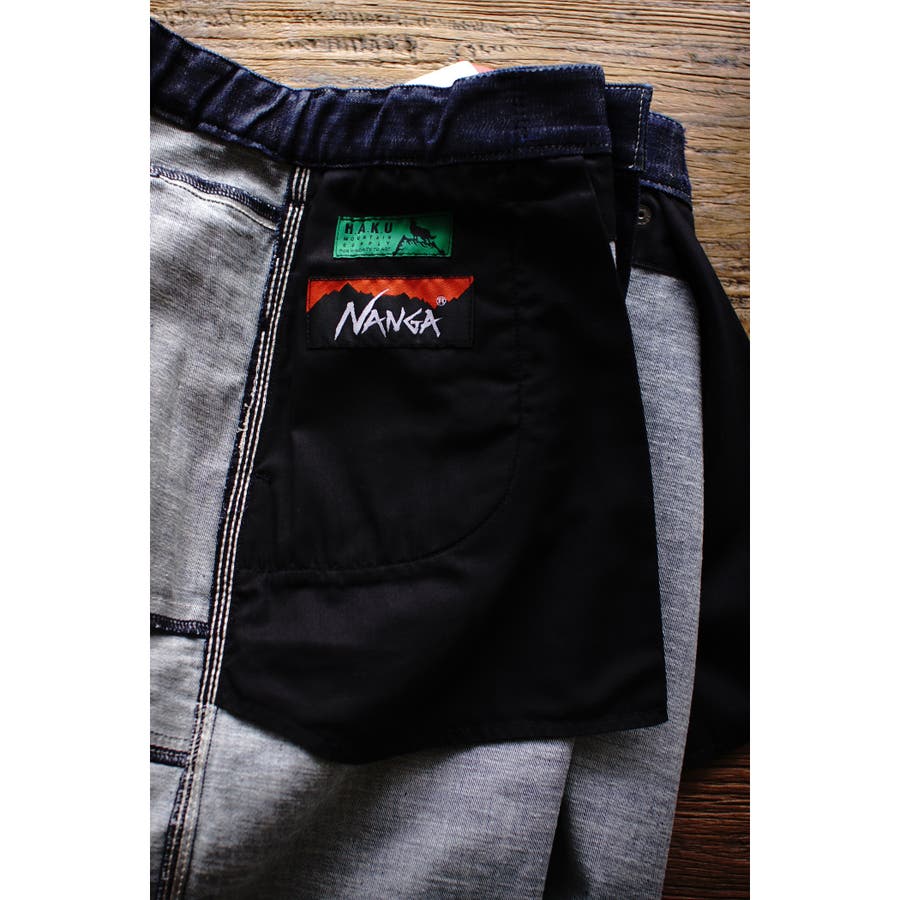 着脱可能なエプロン部とピスポケット部分にNANGAオリジナル素材【HINOC(ヒノック)】を採用。