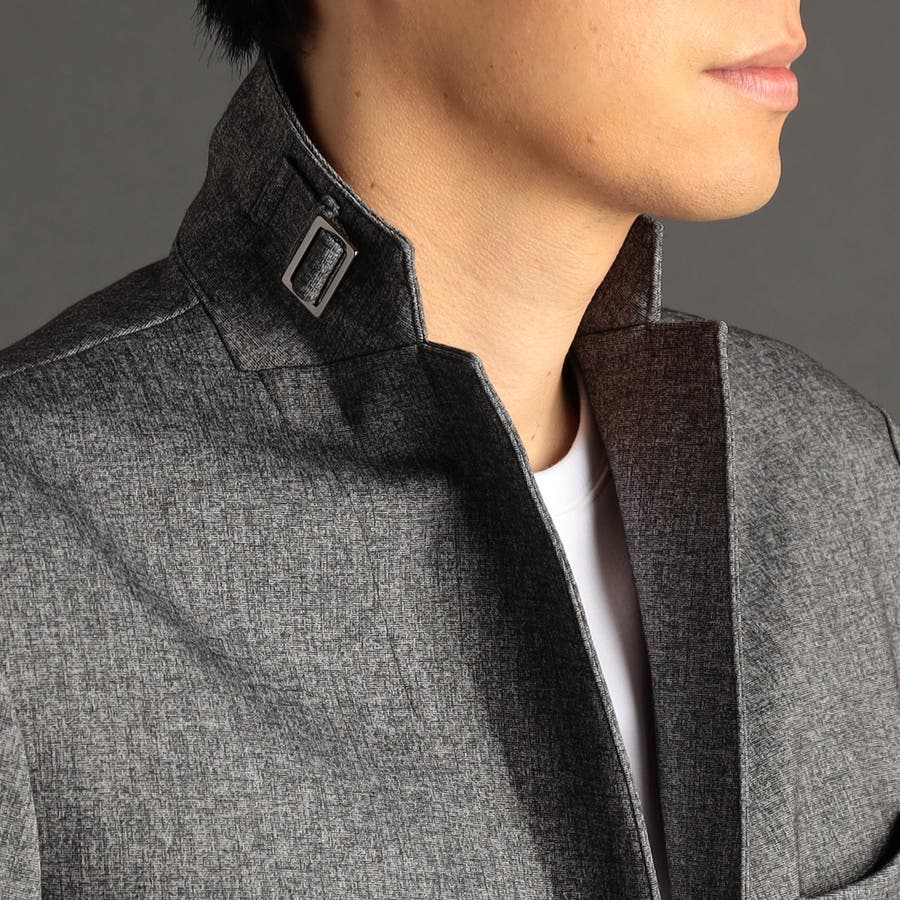 衿裏にタブベルトを装備した2BSコンバーチブルジャケット。