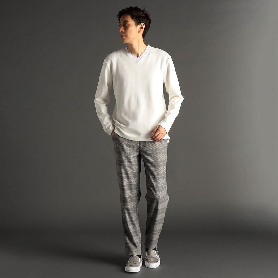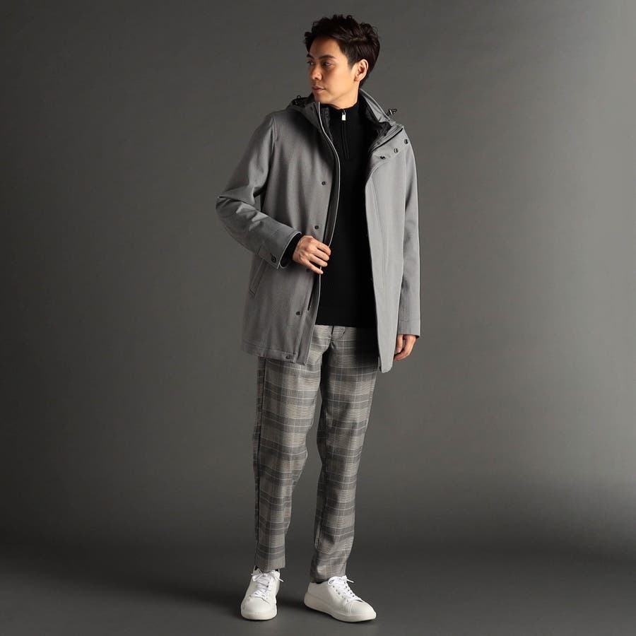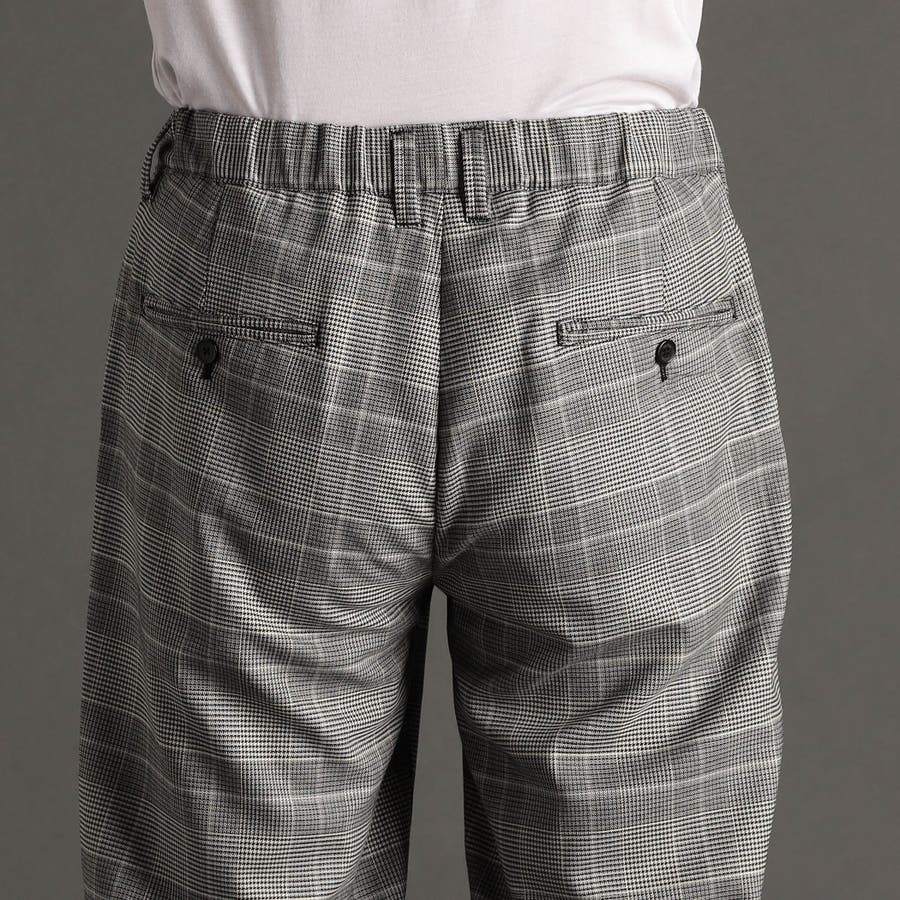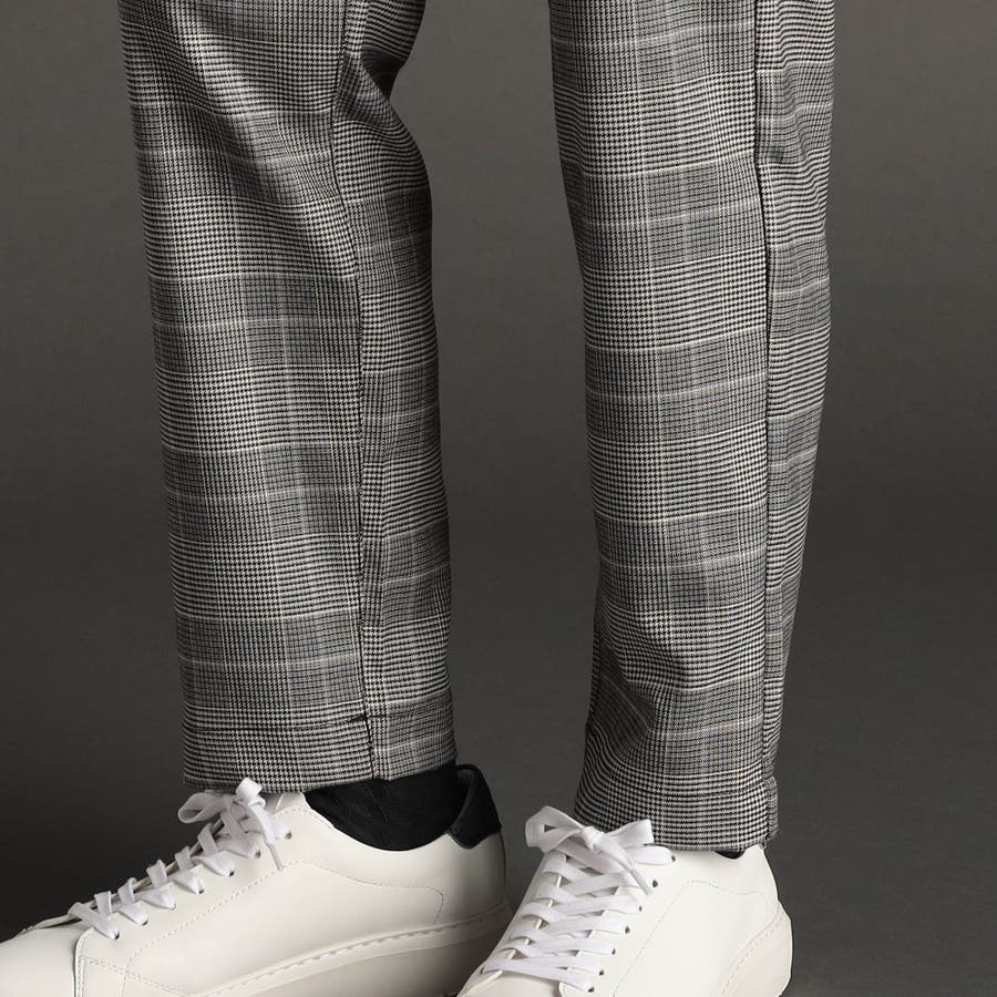 クラシカルなグレンチェックストレッチ素材を使用。