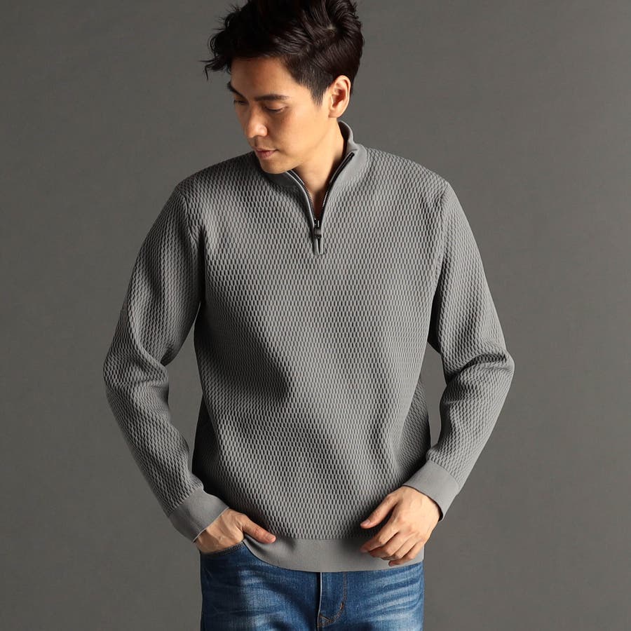 ダイヤジャカード ハーフジップスタンドカラーニット