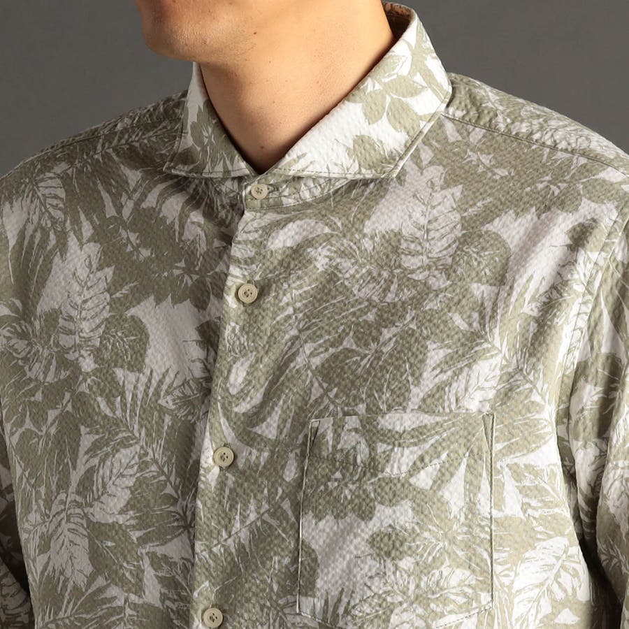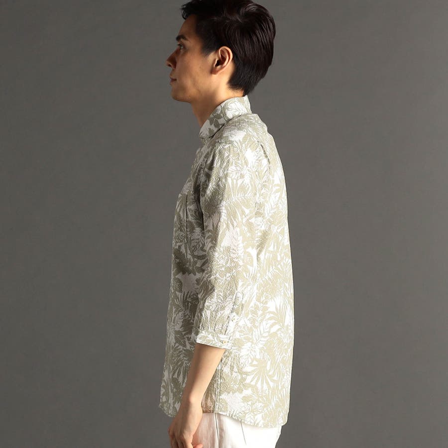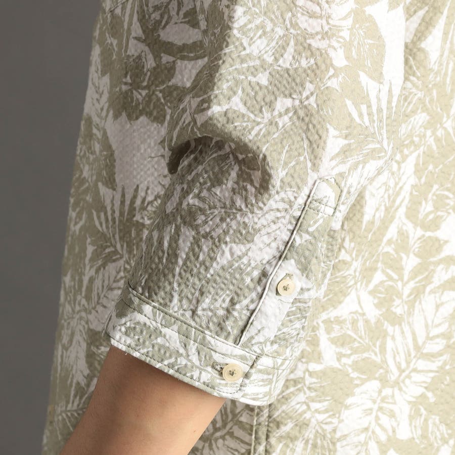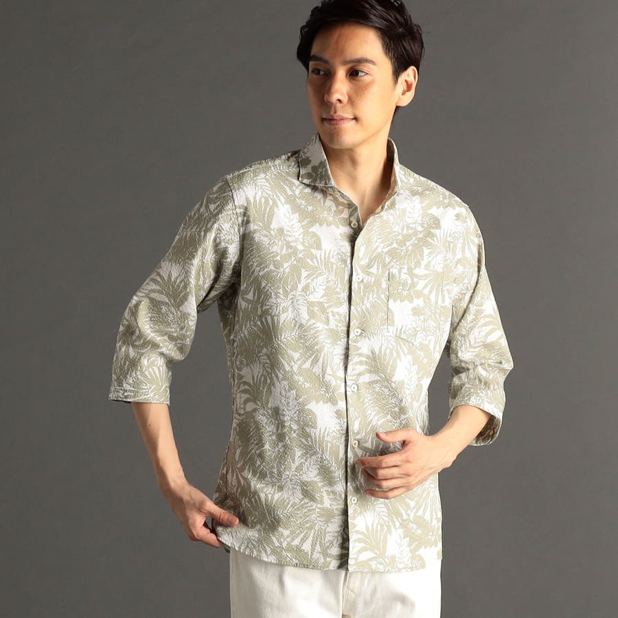 ボタニカルプリント カッタウェイカラー7分袖シャツ