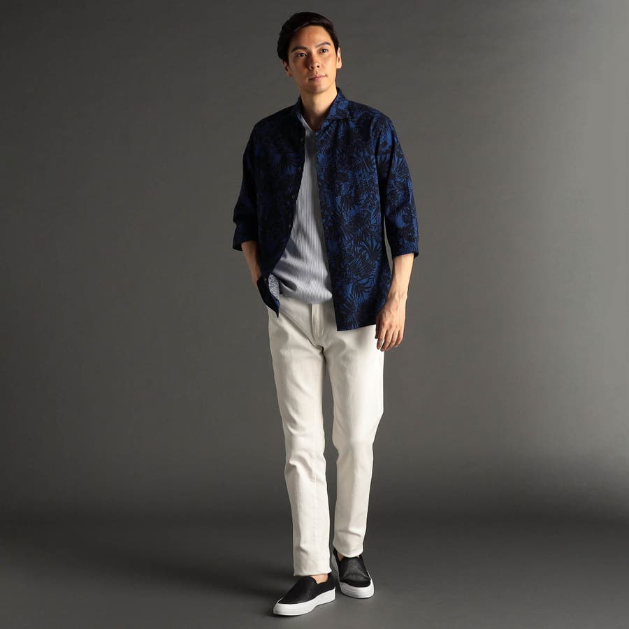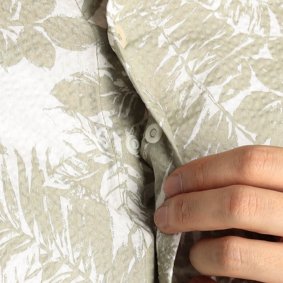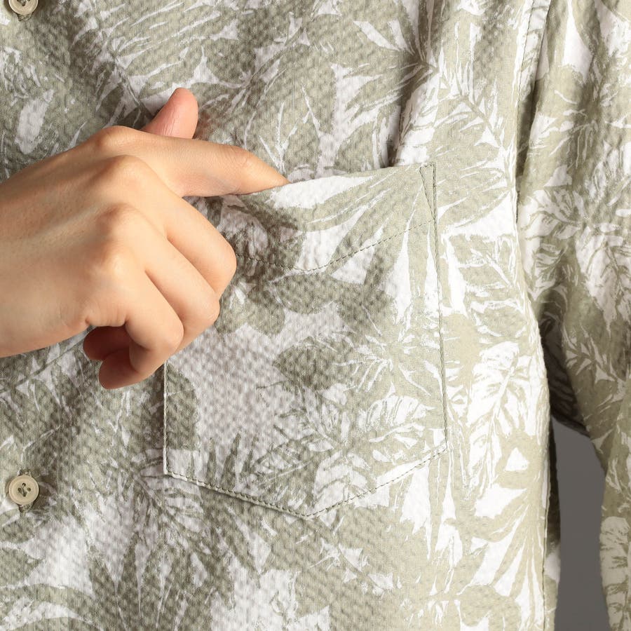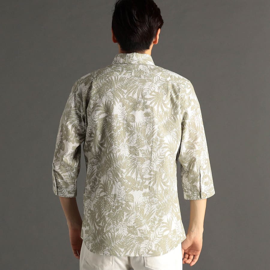 ボタニカルプリント カッタウェイカラー7分袖シャツ