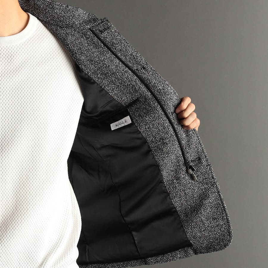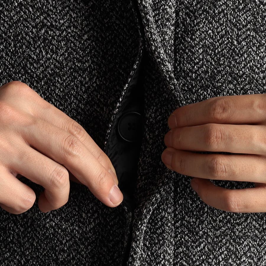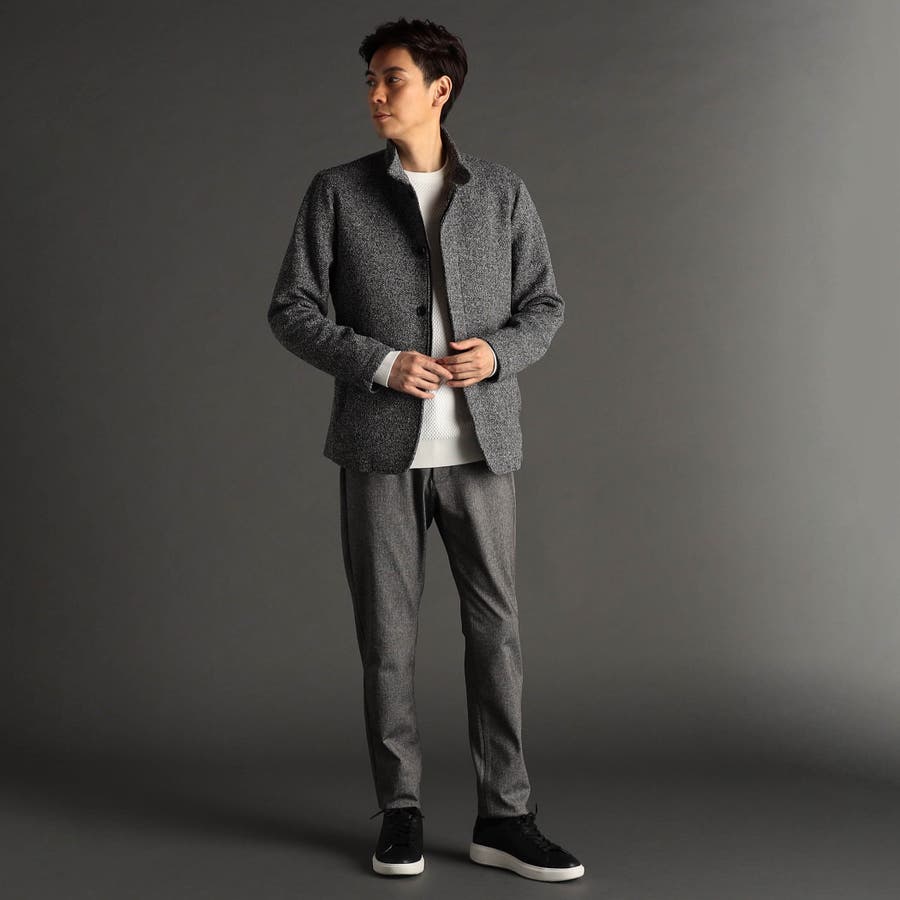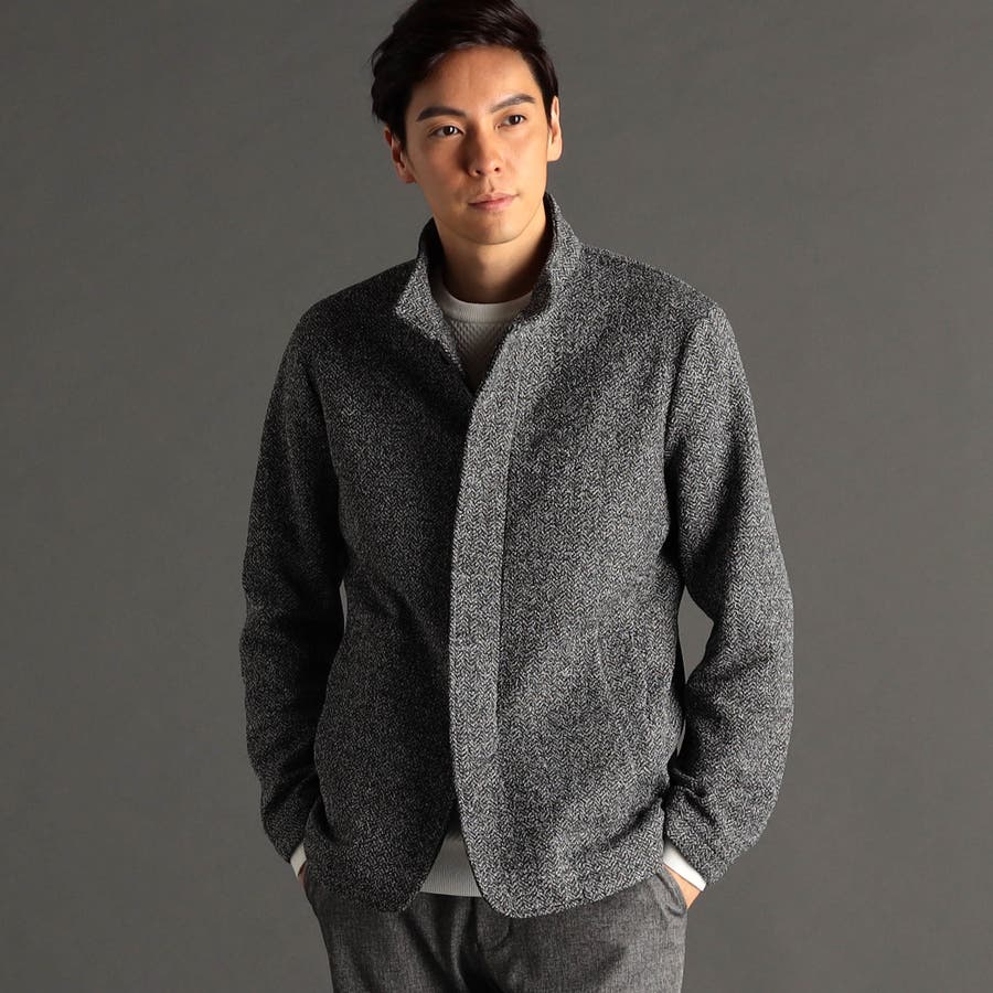 ジャカード編みで、ニットライクなヘリンボン柄を表現した特殊素材。