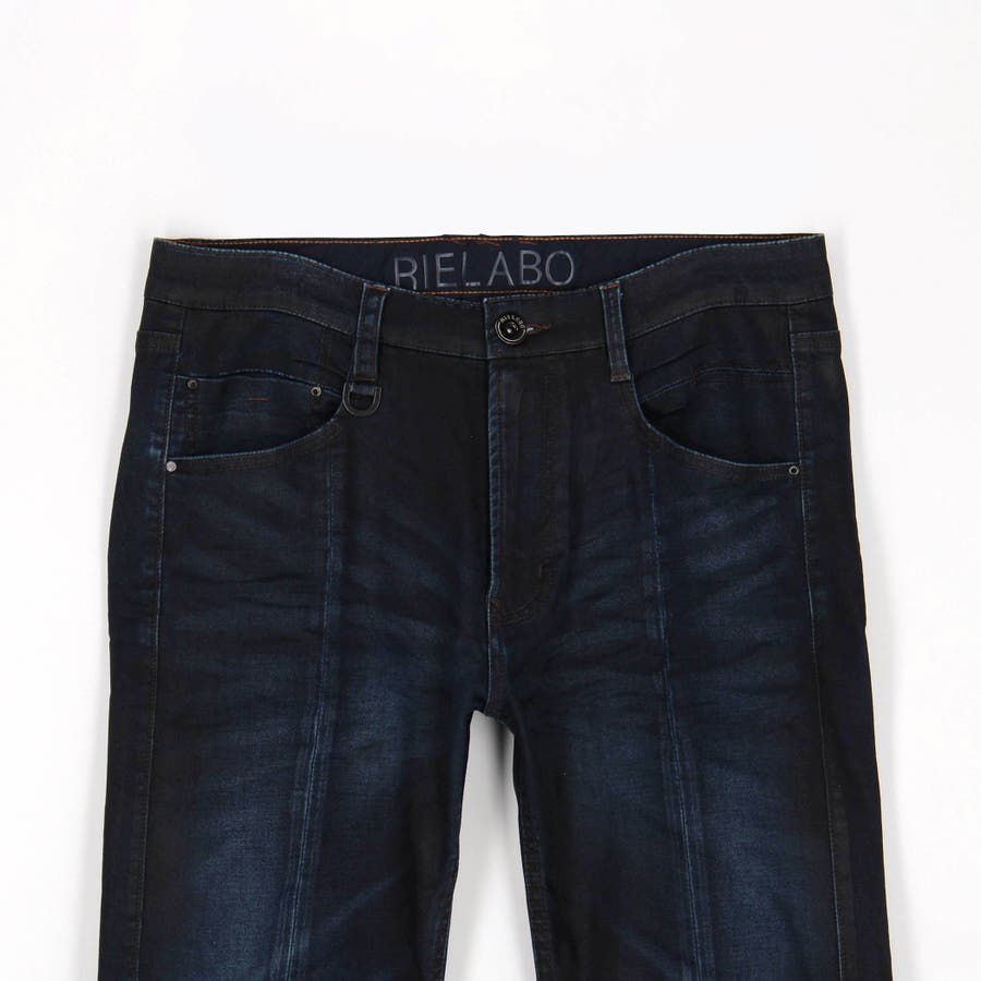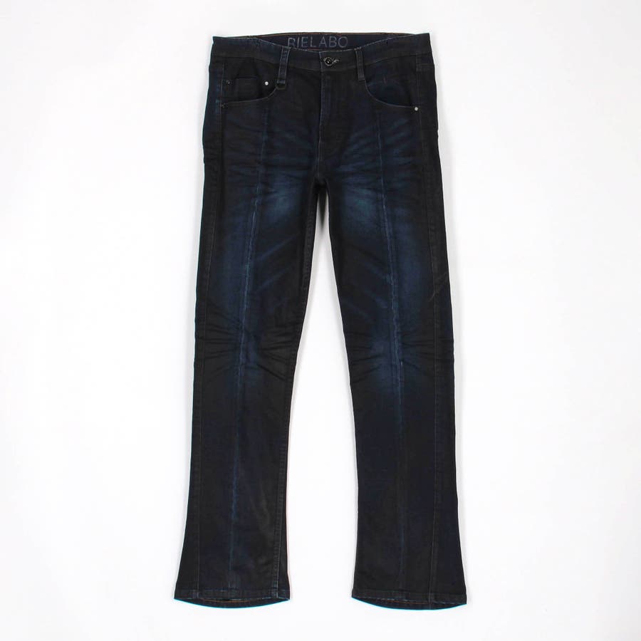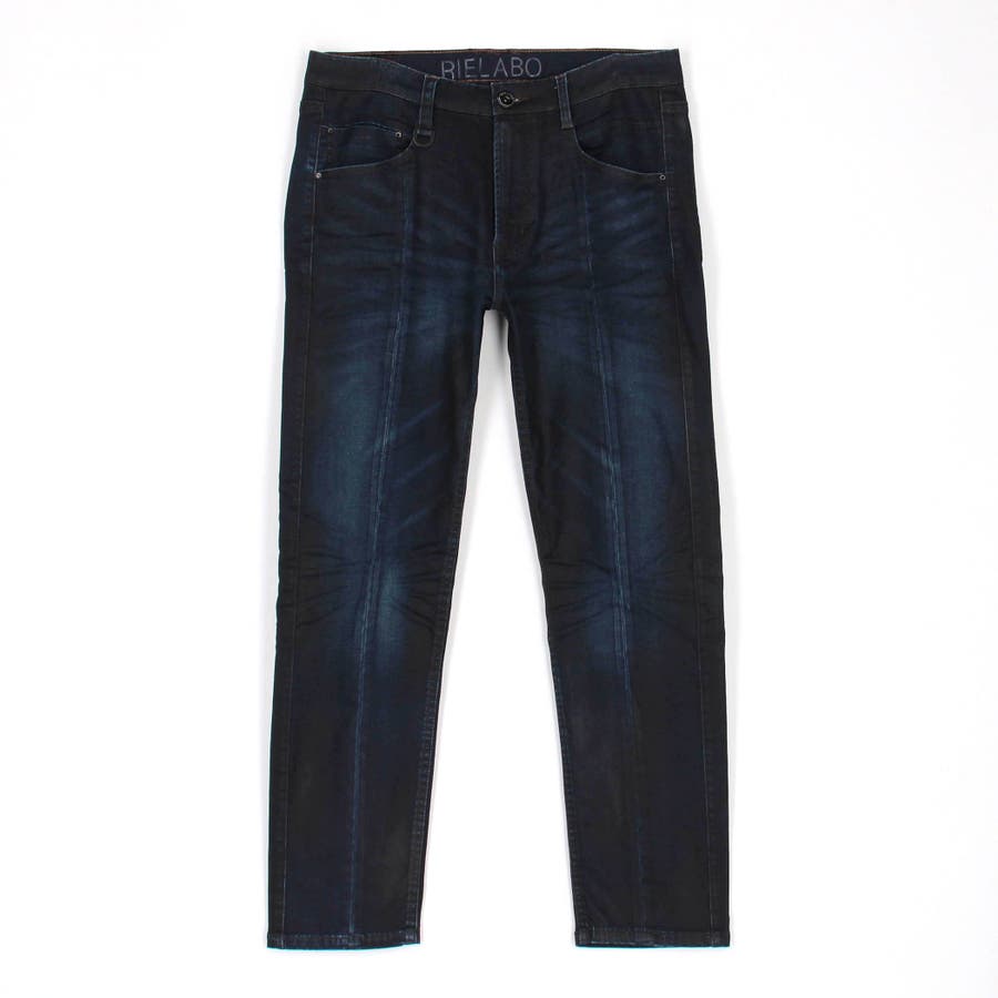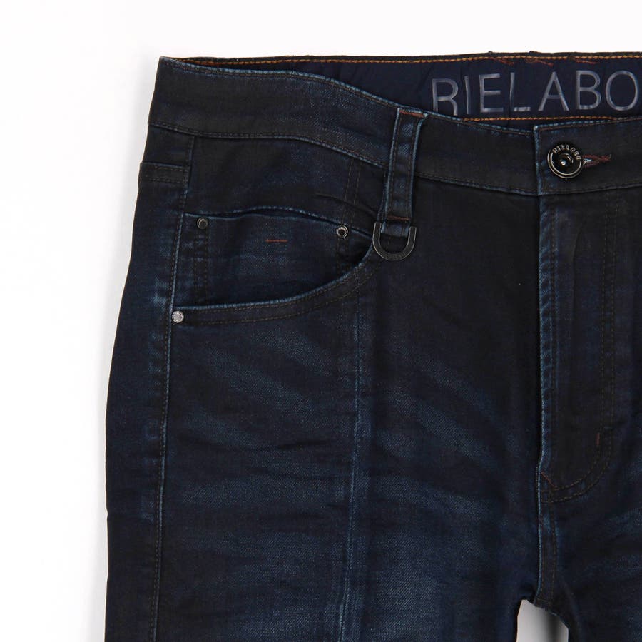 バックポケットのR刺繍と3本のベルトループを特徴としたリエラボの5ポケットデザインパンツ。切り替えデザインを入れる事で加工感が目立つ様にしています。素材にあわせてウエストベルトも少し伸びる様に縫製、ストレッチ裏地を別布に使用していますので穿き着心地も抜群です。