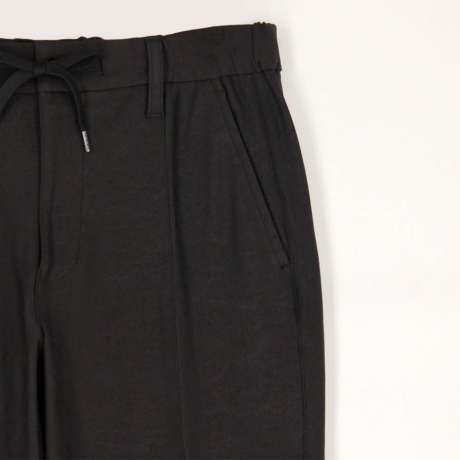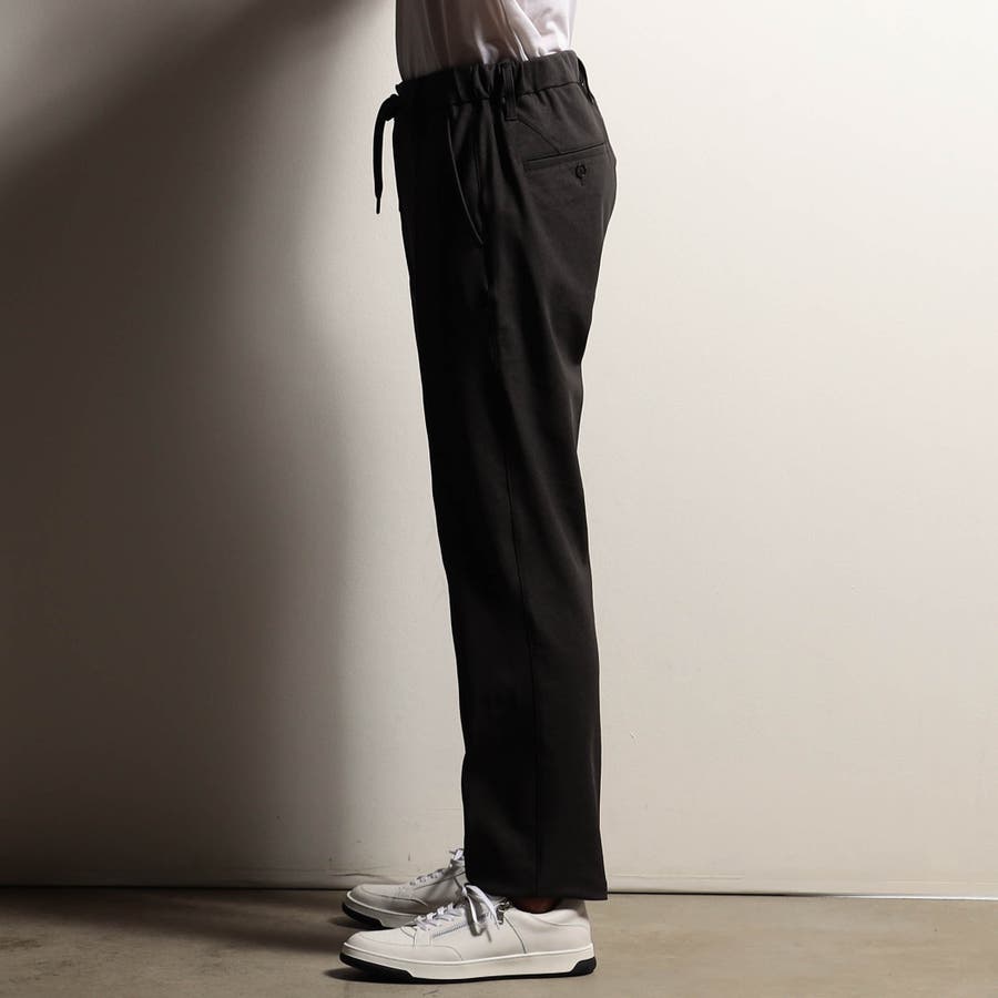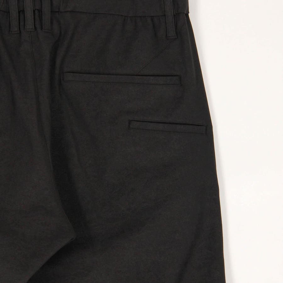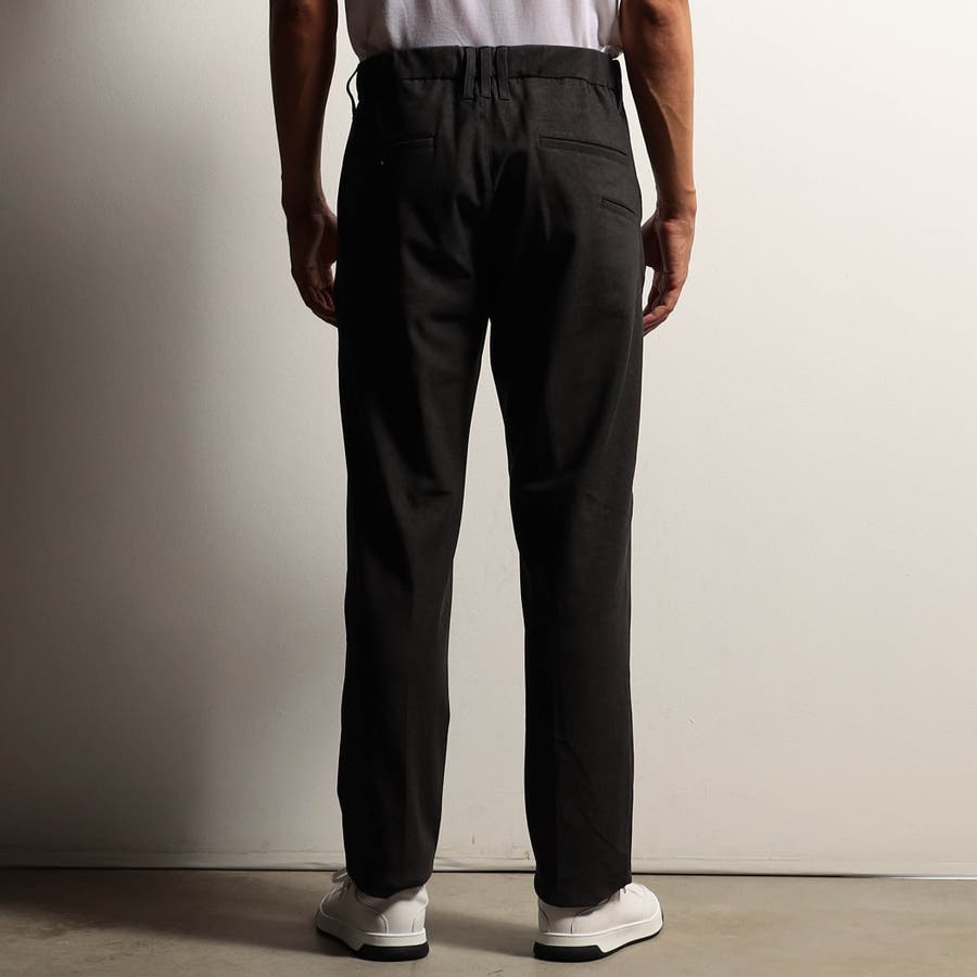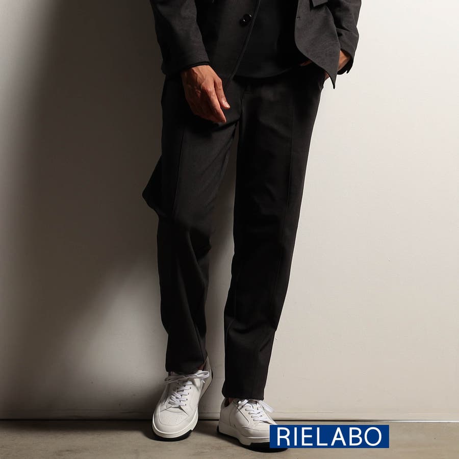 前身のセンター折山部分を摘まんでピンタックにしているデザインイージーパンツ。リエラボならではのバックスタイルにこだわった3本ループとオリジナル釦止めの両玉縁ポケットで差別化をしています。裏の別布にはストレッチメッシュ素材を使用して清涼感を出し、穿き心地を高めています。