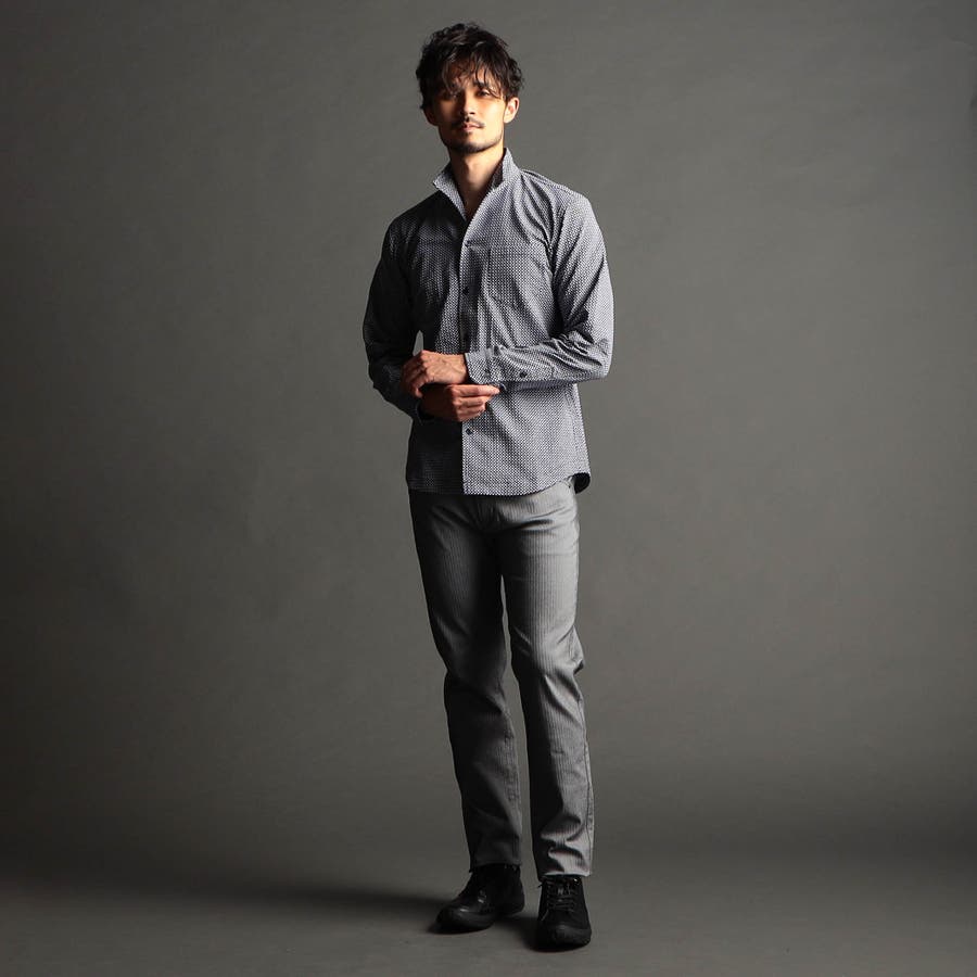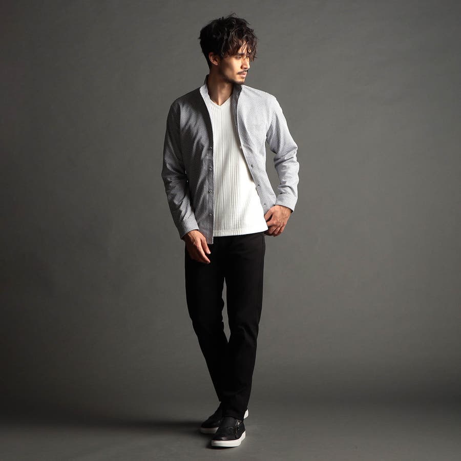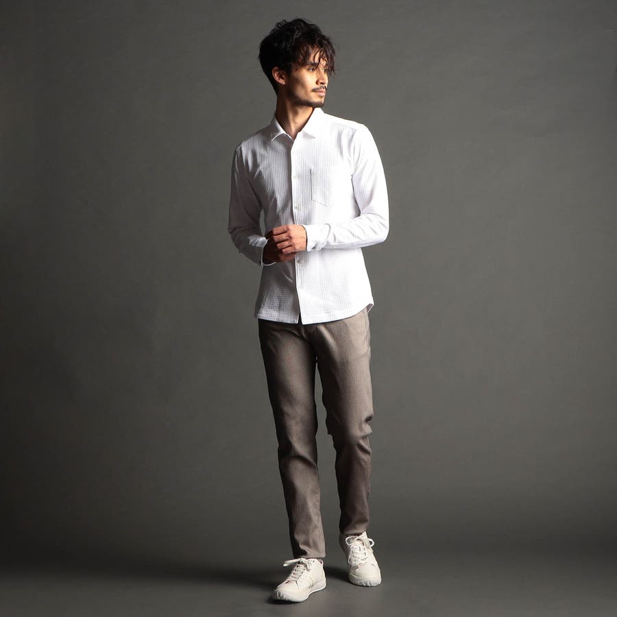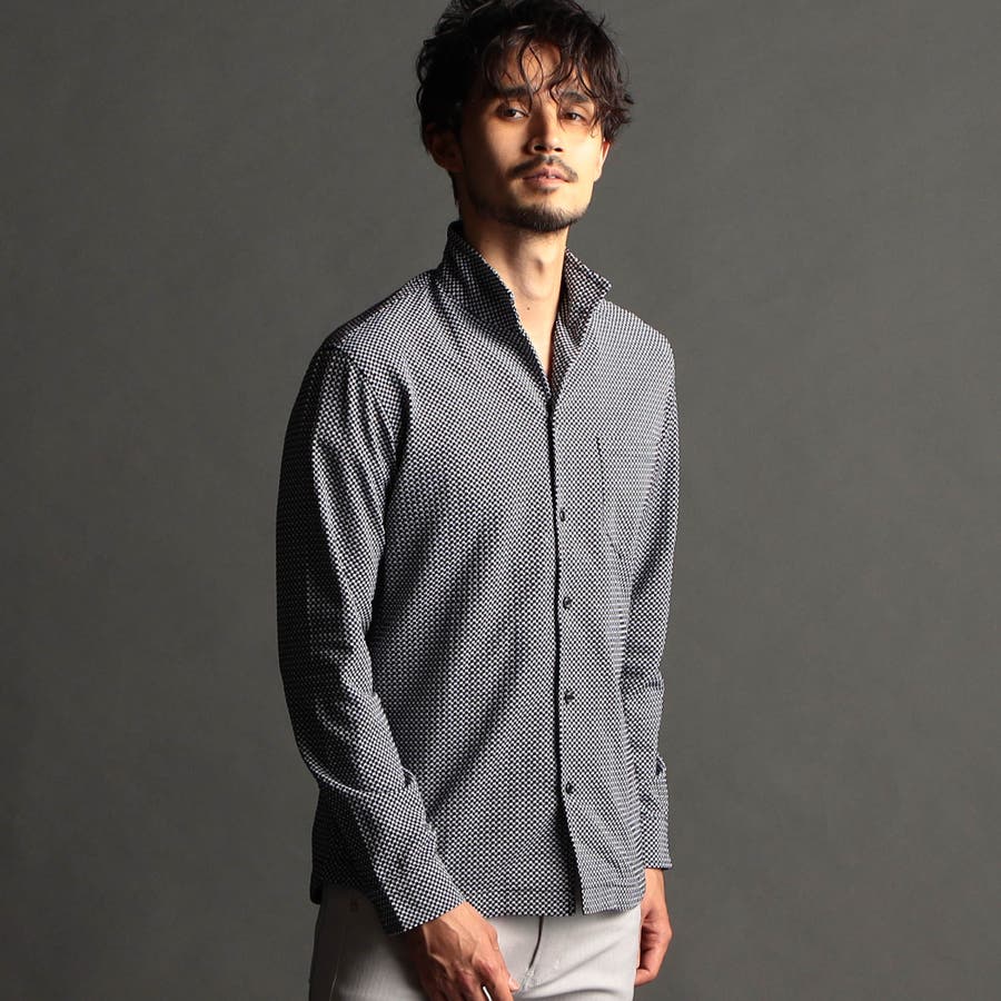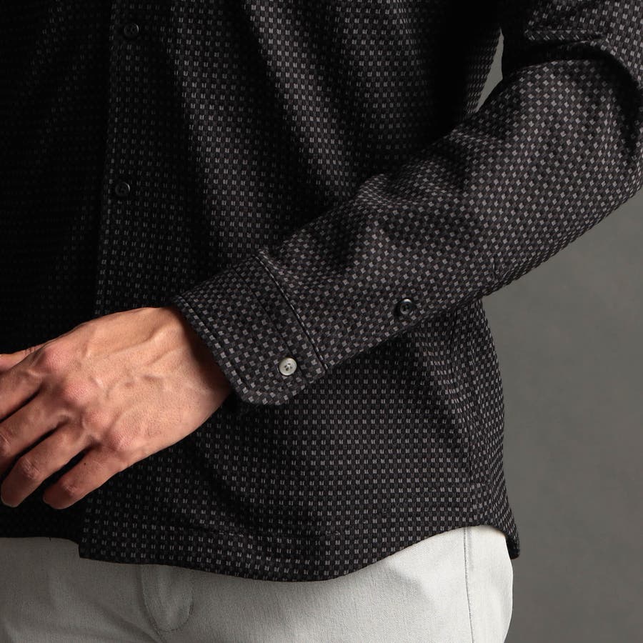 カットソー素材のシアサッカ-シャツ。衿端にワイヤ-を仕込んだイタリアンカラ-とショートレギュラーカラーで展開します。左胸のパッチポケットや袖口部分の剣ボロ仕様、オリジナルの配色ボタンがちょっとしたアクセントになっています。
